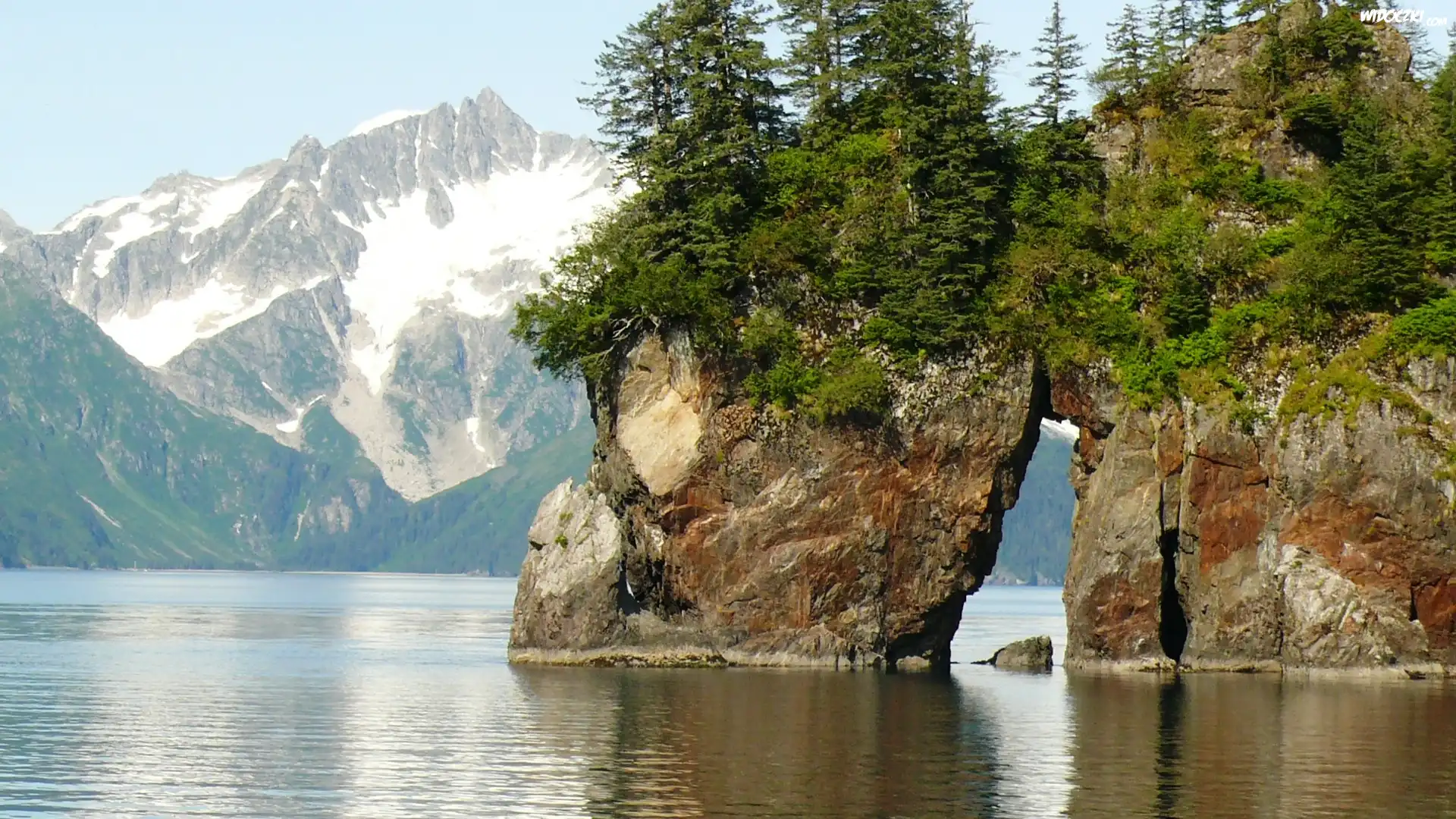 Zdjęcia, Góry, Skały, Jezioro, Drzewa, Alaska