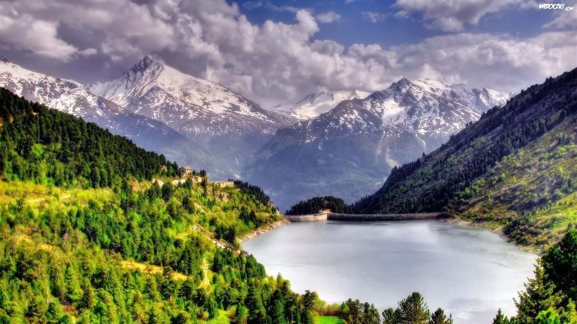 Zdjęcia, Góry, Jezioro, Drzewa, Zapora
