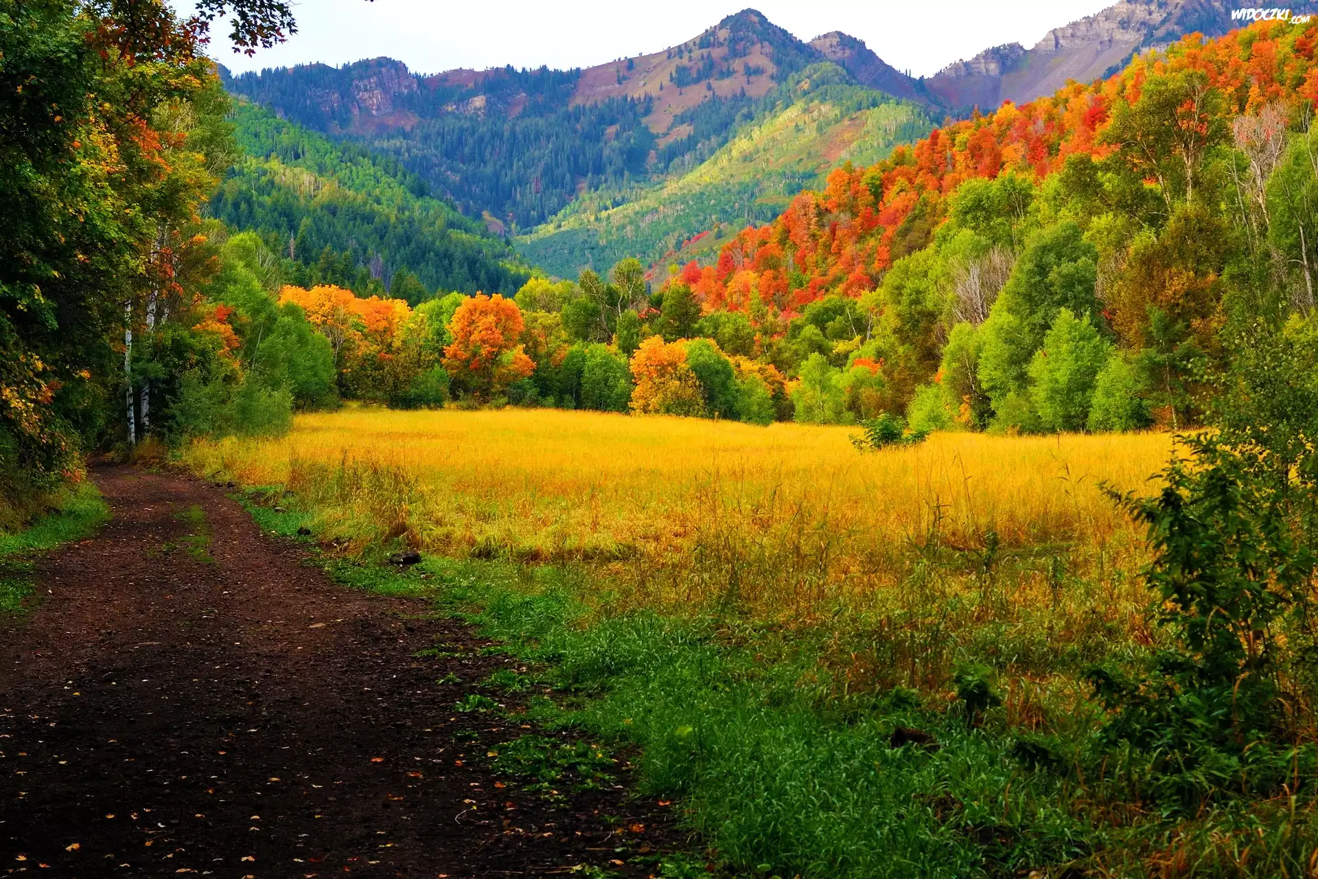 Góry, Lasy, Kolorowe, Drzewa, Jesień