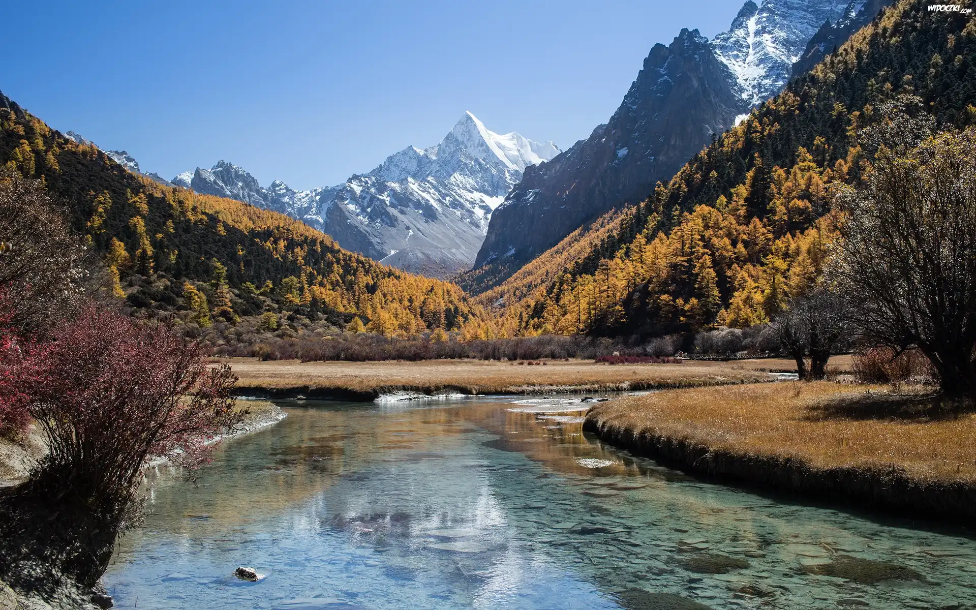 Zdjęcia, Góry, Las, Drzewa, Rzeka