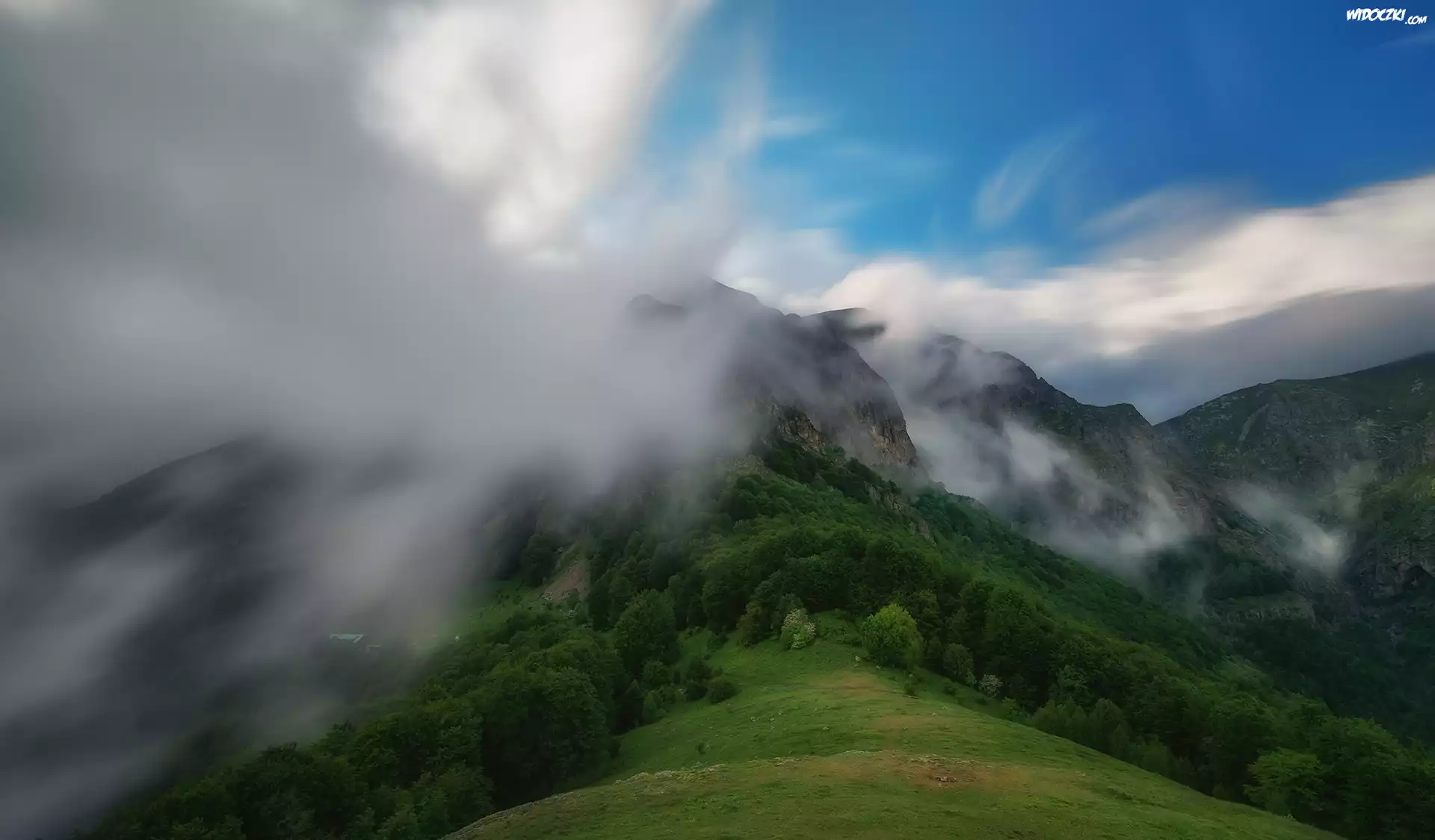Góry, Mgła, Drzewa, Las