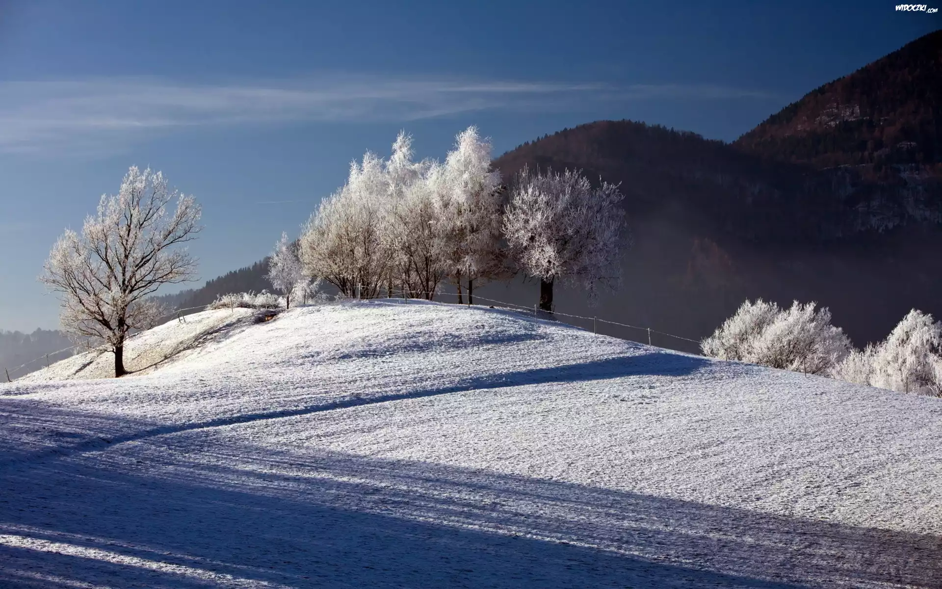 Góry, Pola, Drzewa, Zima