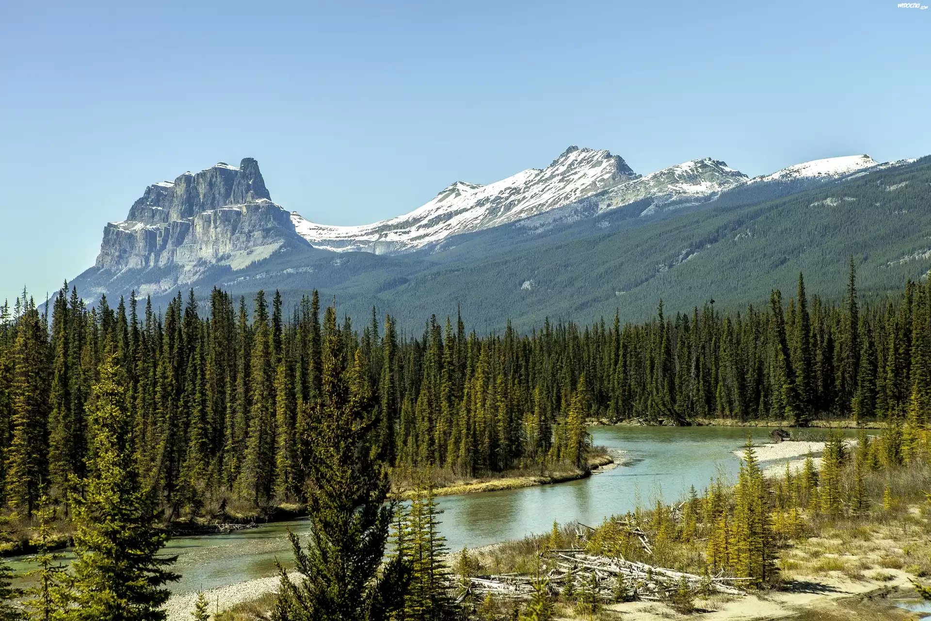 Zdjęcia, Góry, Rzeka, Drzewa, Przyroda
