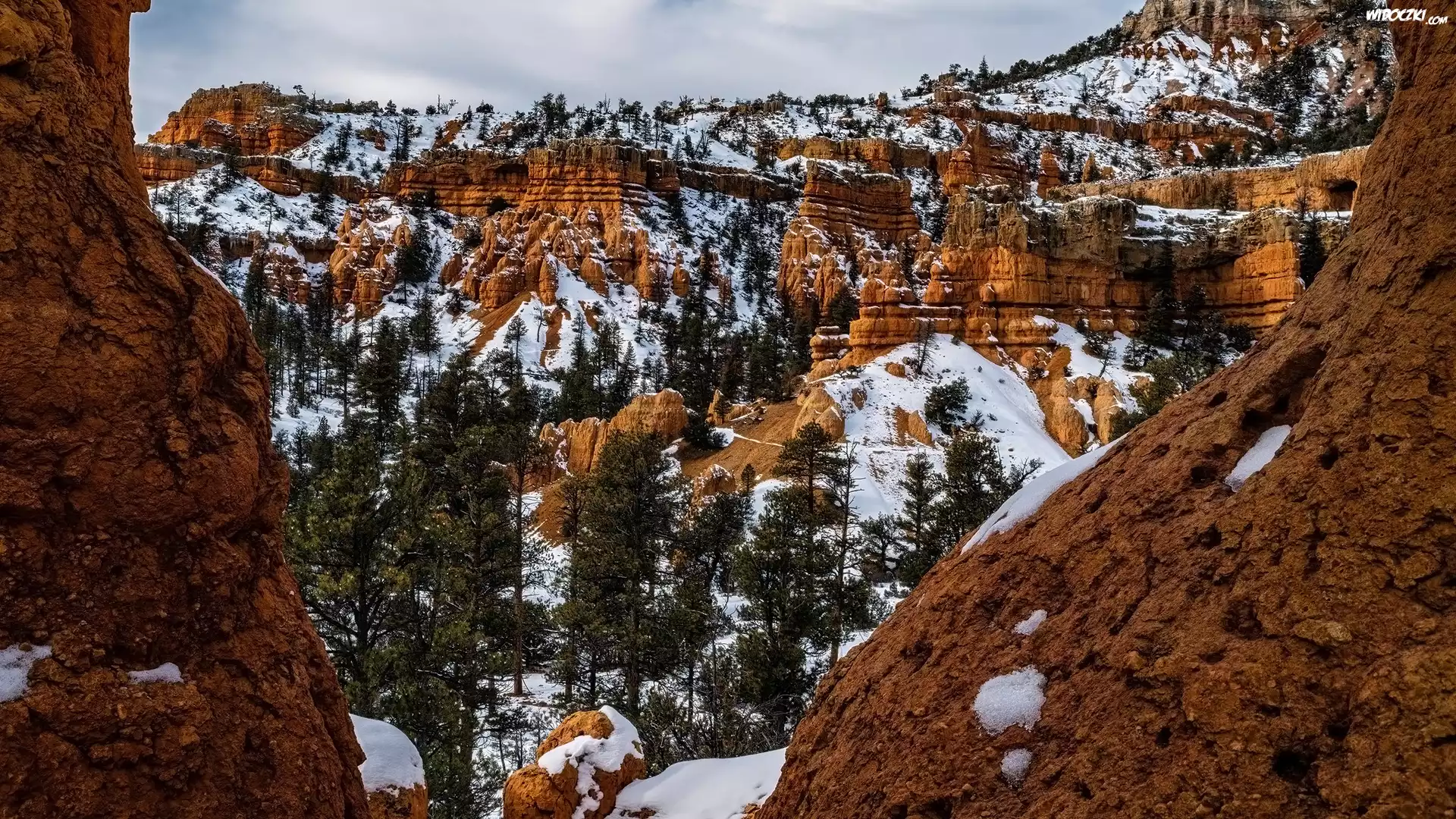 Zdjęcia, Zima, Góry, Drzewa, Kanion, Skały