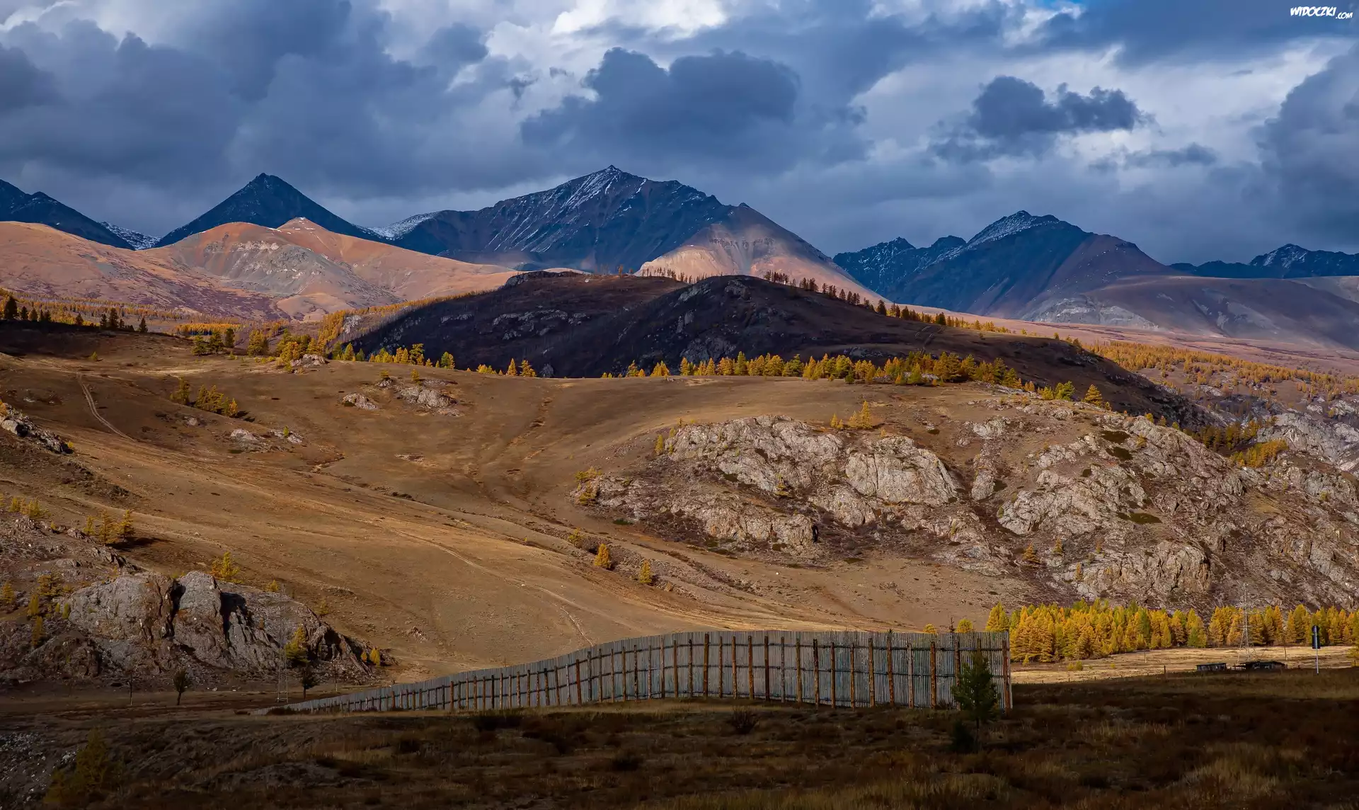 Góry, Skały, Drzewa, Płot
