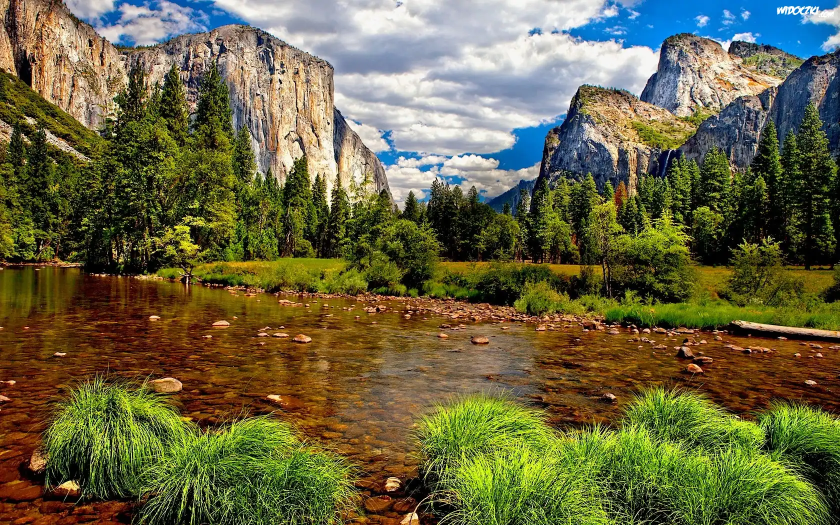 Zdjęcia, Góry, Woda, Drzewa, Trawy