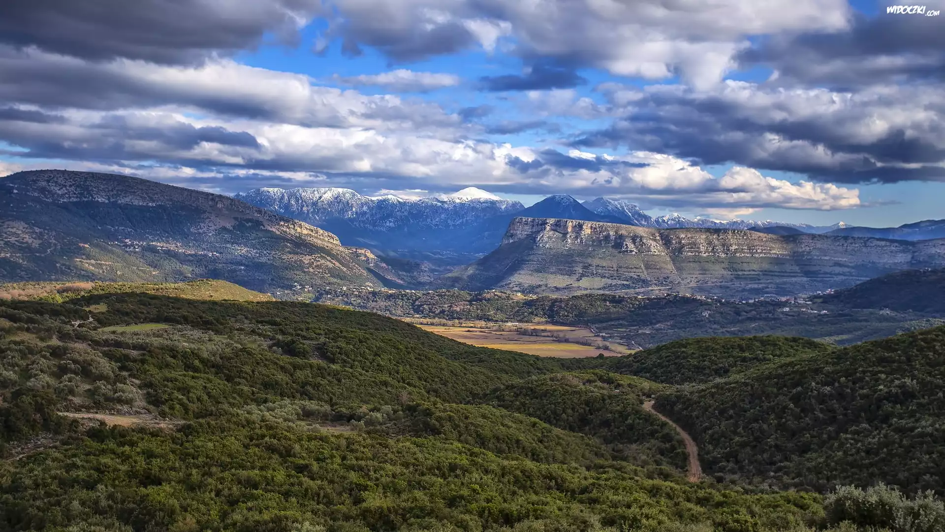 Zdjęcia, Góry, Chmury, Wzgórza, Lasy, Drzewa, Dolina