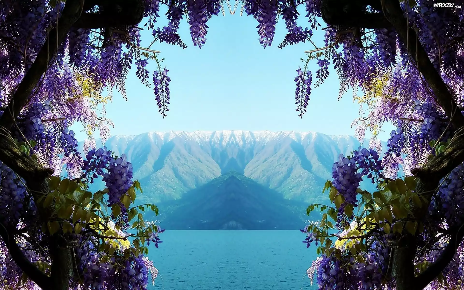 Góry, Jezioro, Drzewo, Glicynia