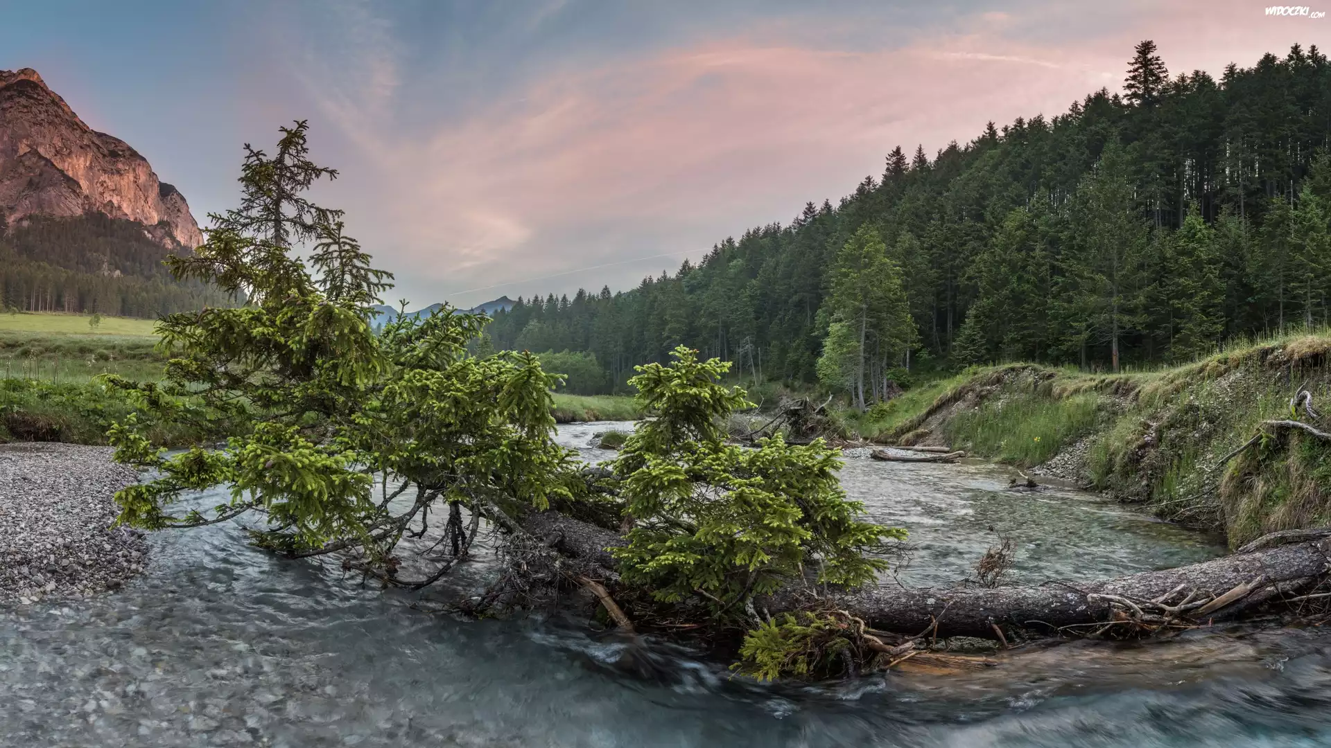 Góry, Rzeka, Powalnoe, Drzewo, Las