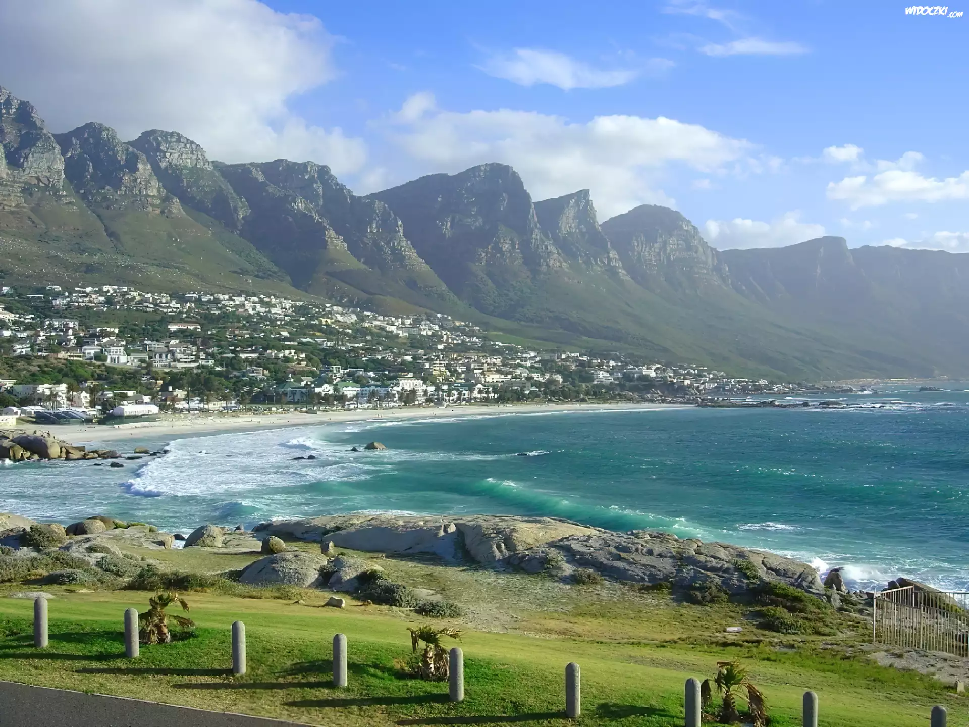 Zdjęcia, Góry, Morze, Fale, Chatki