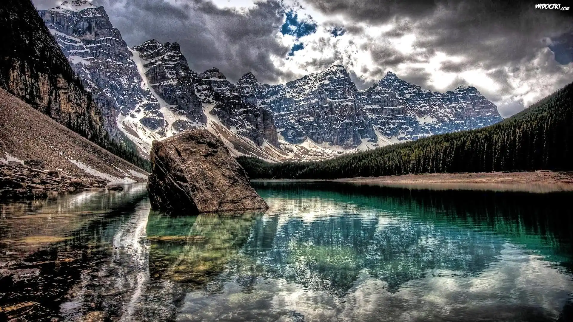 Zdjęcia, Góry, Jezioro, Głaz, Chmury