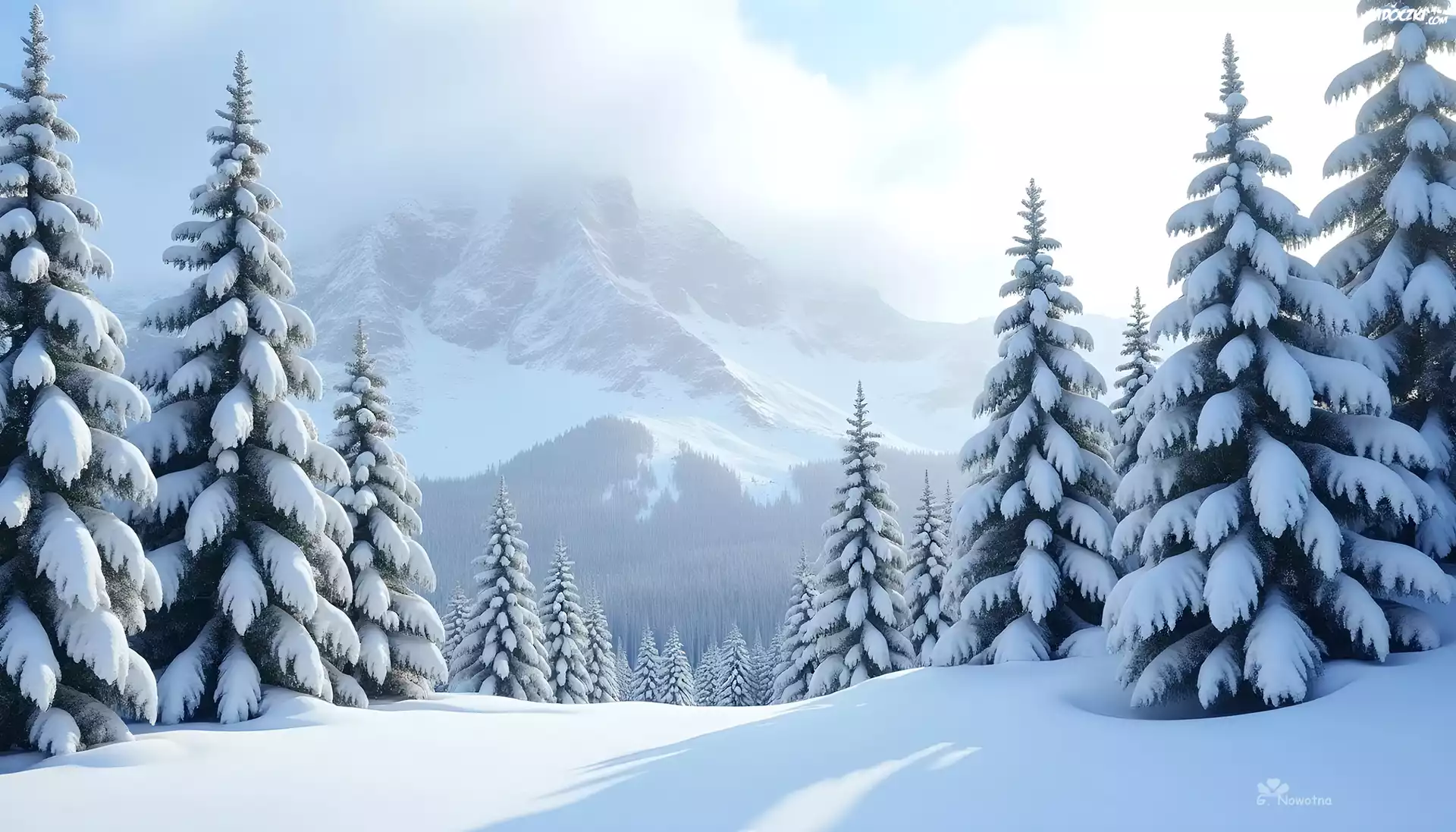 Ośnieżone, Drzewa, Świerki, Góry, Zima, Grafika