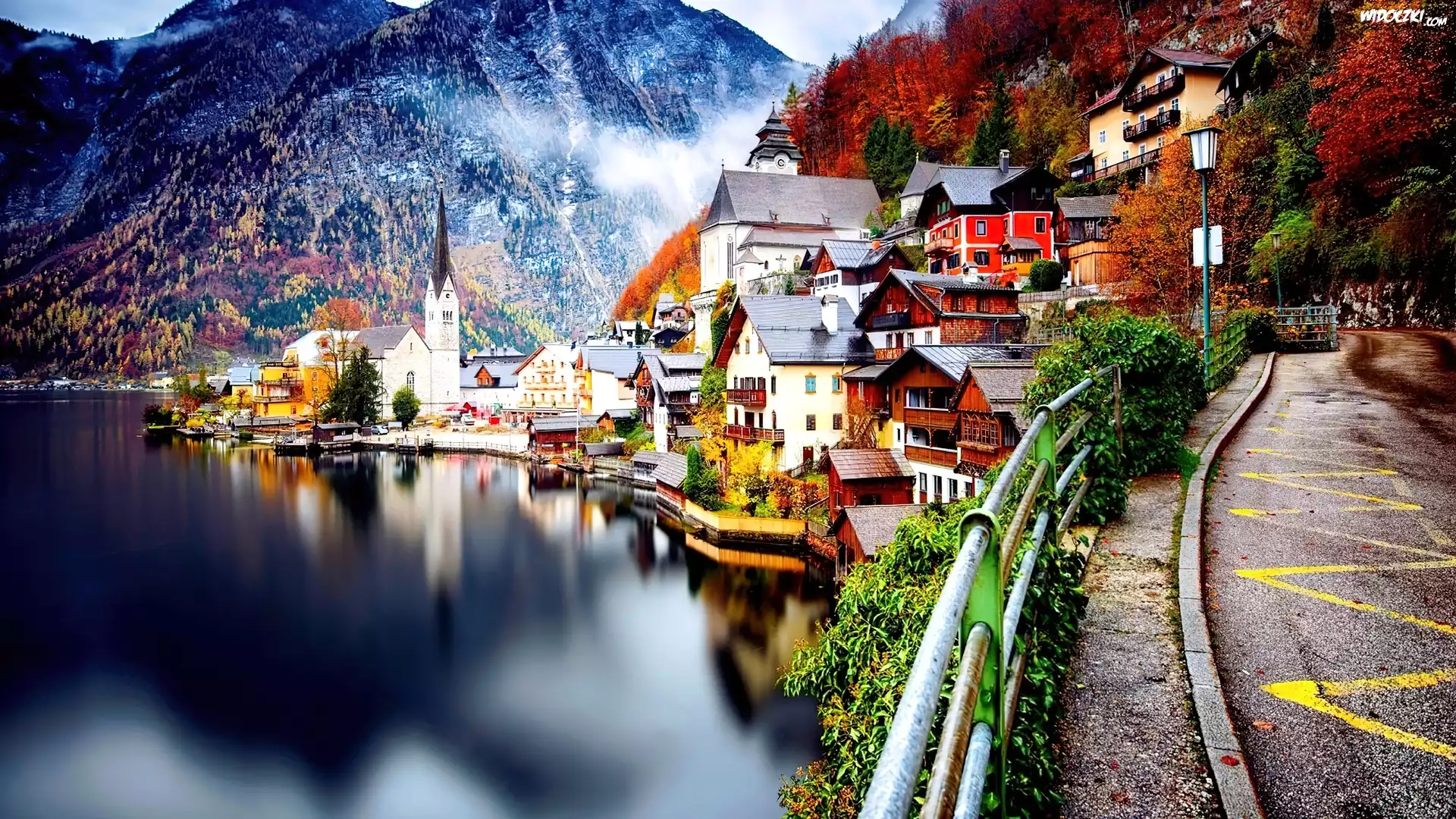 Zdjęcia, Góry, Jezioro, Jesień, Hallstatt, Austria