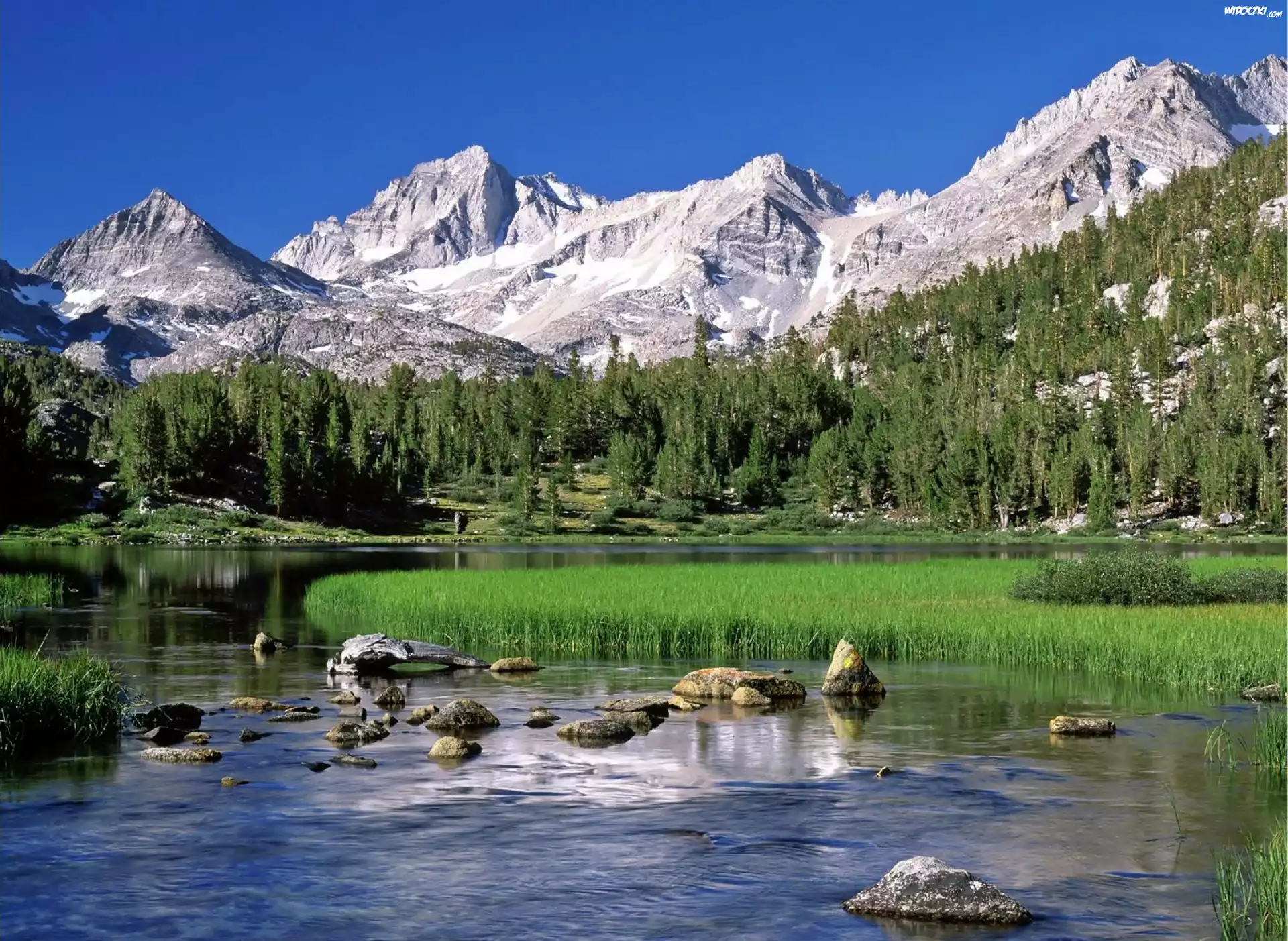 Góry, Las, Jezioro, Heart, Kalifornia