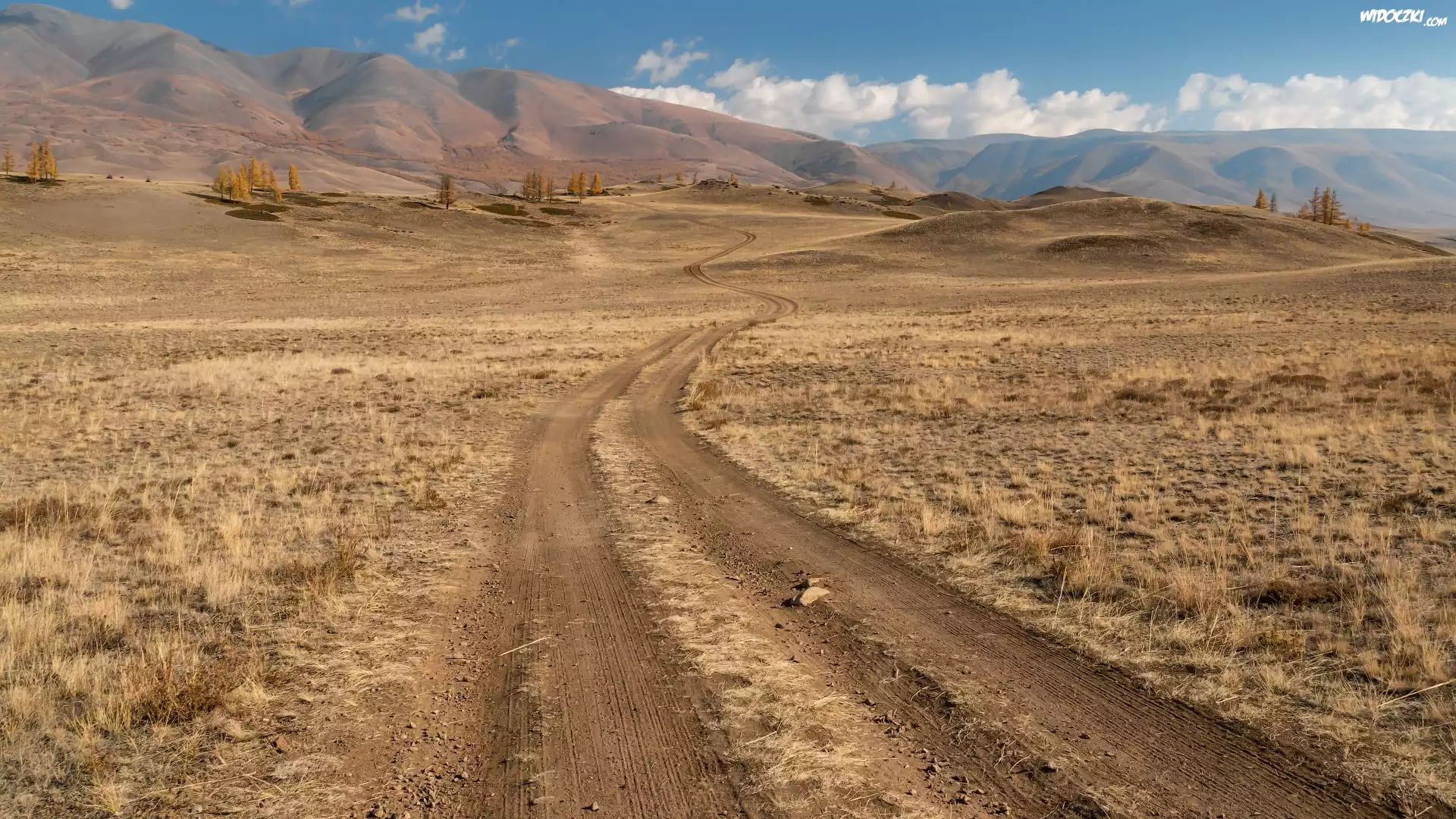 Zdjęcia, Jesień, Góry, Wzgórza, Droga, Drzewa, Sucha, Trawa