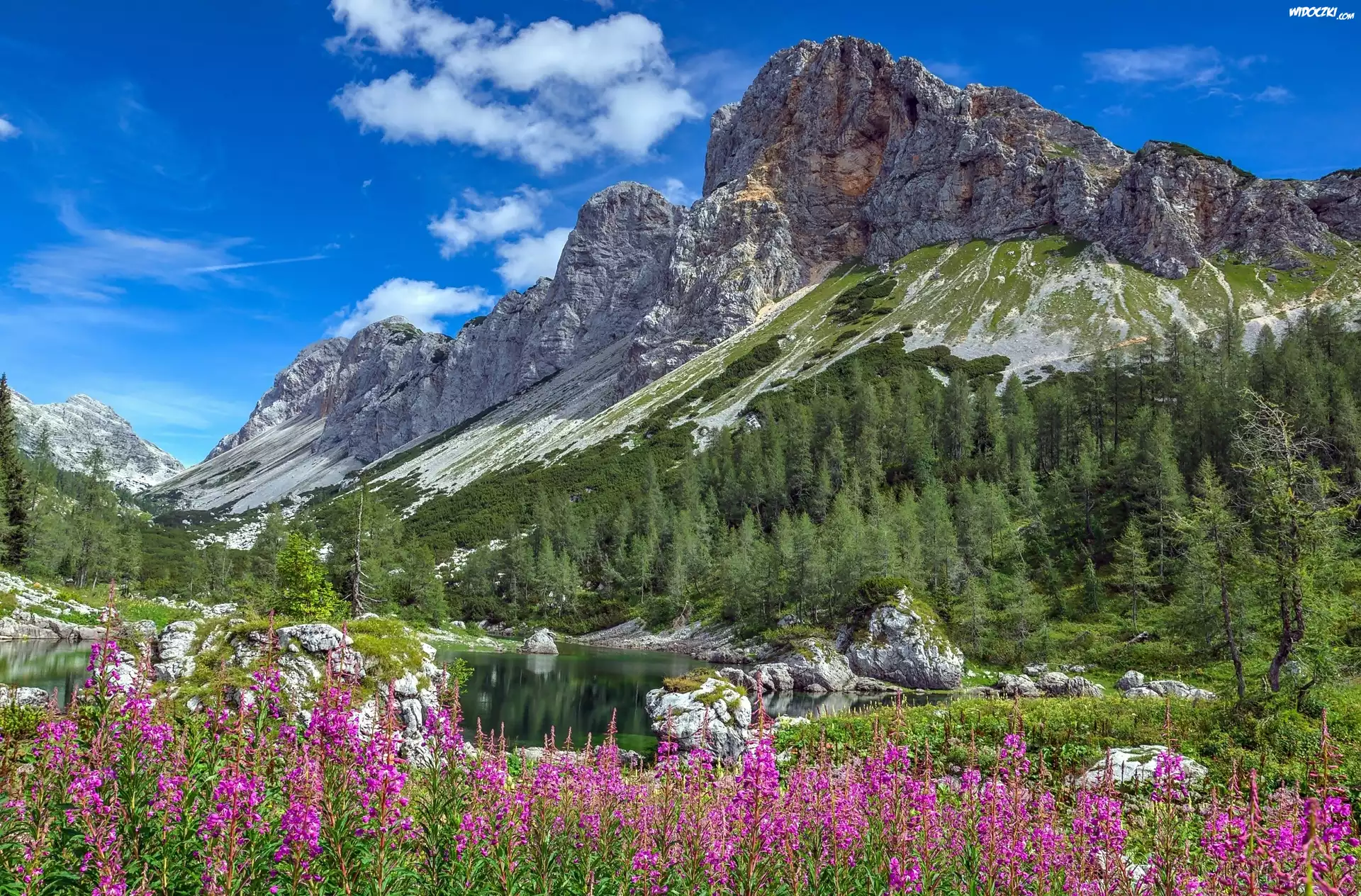 Zdjęcia, Góry, Las, Jeziorko, Łąka