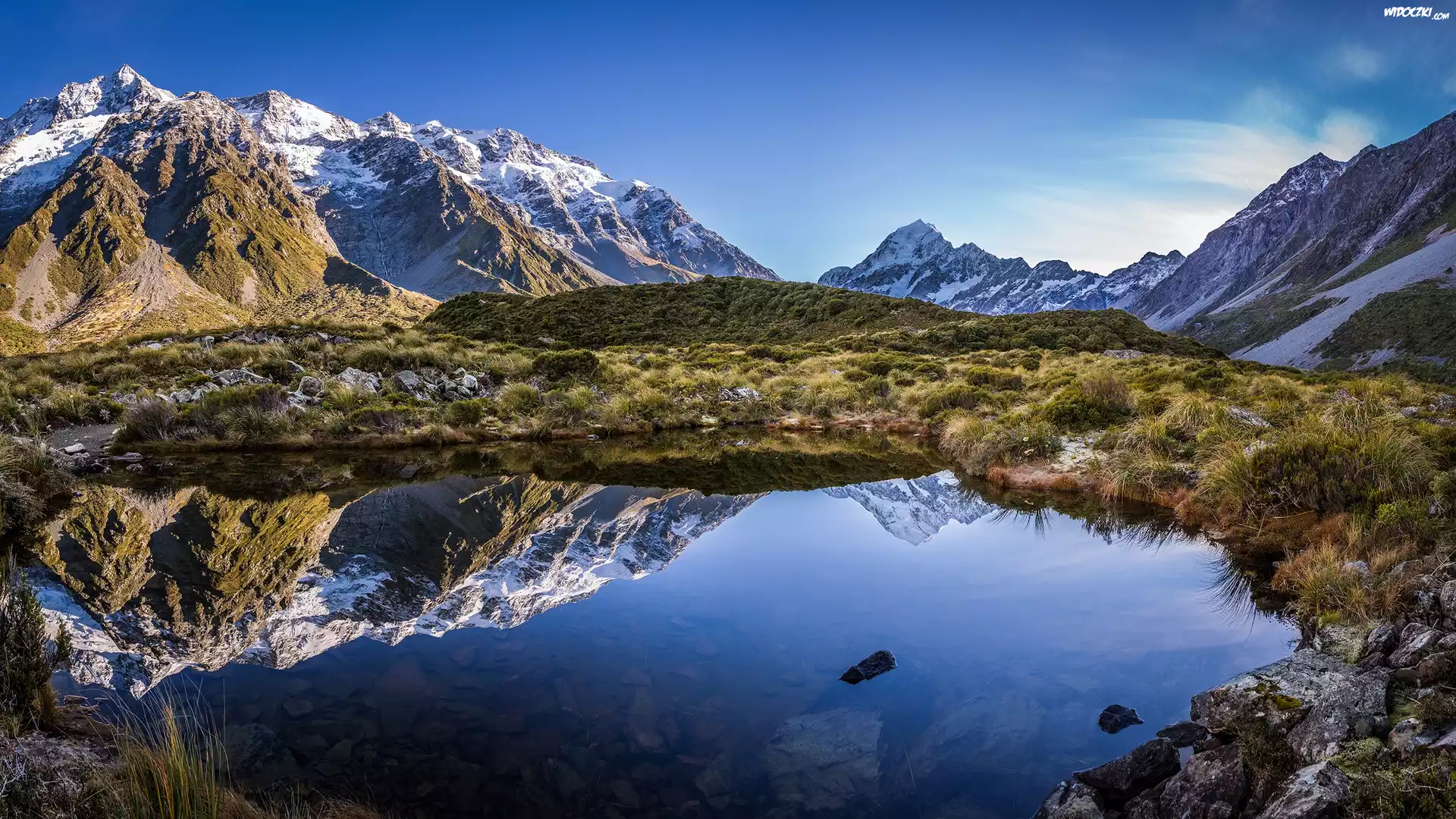 Ska³a, Pos±gi Góry, Lasy, Jezioro, Panorama, Miasteczka Góry, Woda, Niebo Wie¿owce, Rzeka, Pod¶wietlany, Most, Tokyo Zachód S³oñca, Drzewa, ¦nieg Australia, Loch Ard Gorge, Morze, Klif, Wybrze¿e, Zachód s³oñca Pomost, Jezioro, Mg³a, Domek Nowa Zelandia, Rzeka Hooker, Park Narodowy Góry Cooka, Góra Cooka - Mount Cook, Góry, Kamienie Las, Drzewo, Iglaste ,Promienie, S³oñca