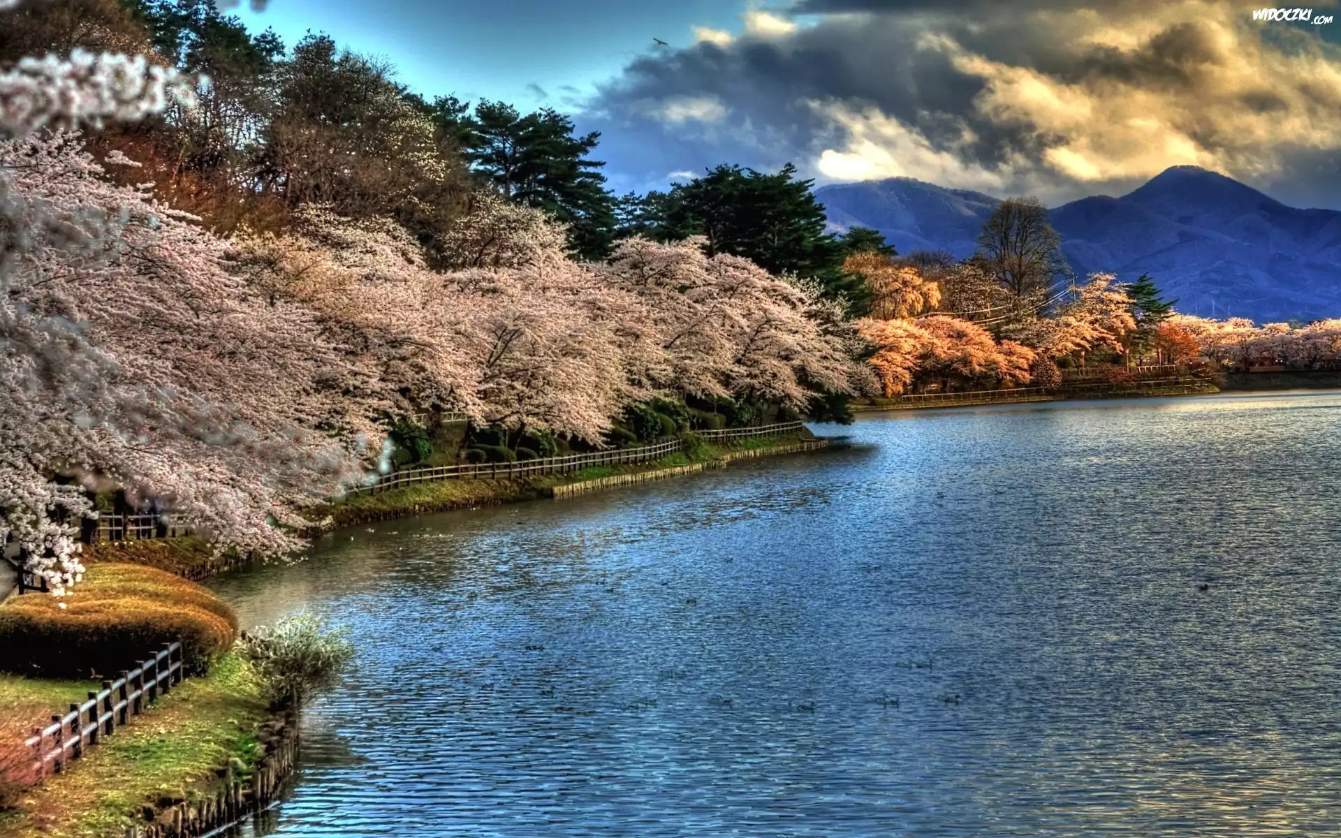 Jezioro, Chmury, Odbicie Góra Wodospad Góry Jesień, Góry, Jezioro Zachód Słońca, Jezioro Zachód Słońca, Chmury Ławeczka, Pole Polne, Wiosenne, Kwiaty Góra, Chmury Góra, Zima Góra, Chmury, Niebo Wodospad Góry, Rzeki Wiosna, Zielona, Łąka, Niebo, Serduszko Samotny, Świerk, Brzozy
