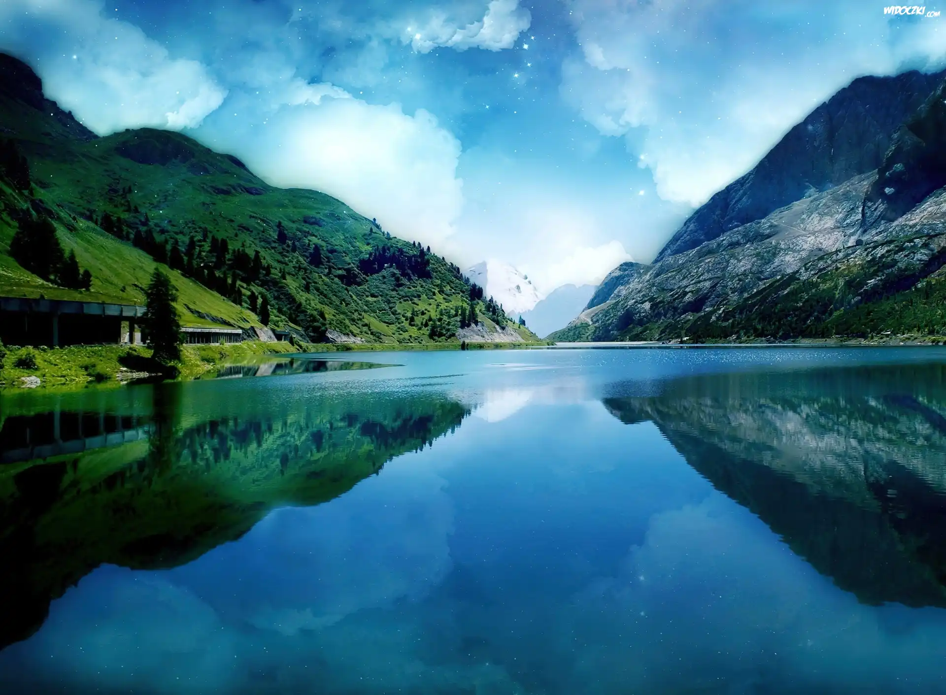 Zdjęcia, Jezioro, Góry, Chmury