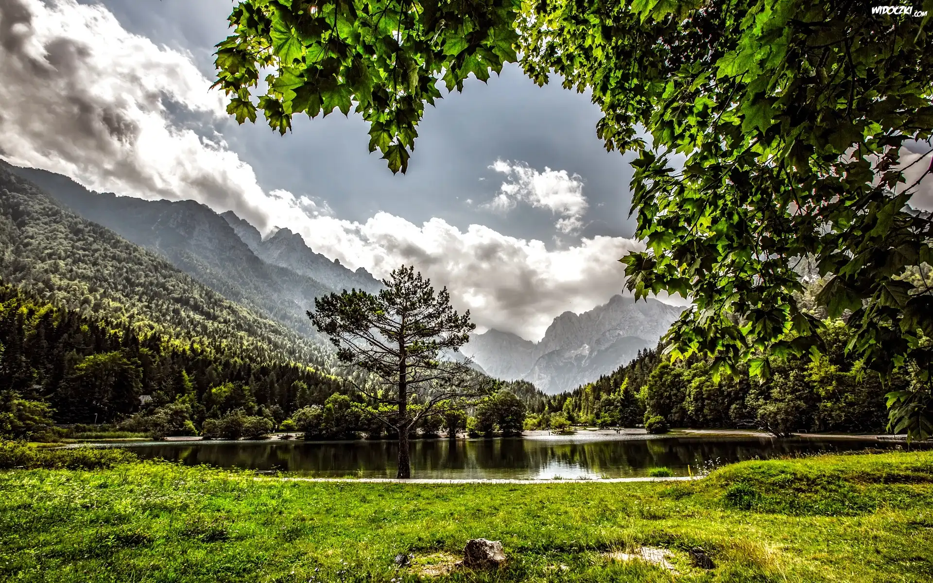 Zdjęcia, Góry, Chmury, Jezioro, Drzewa