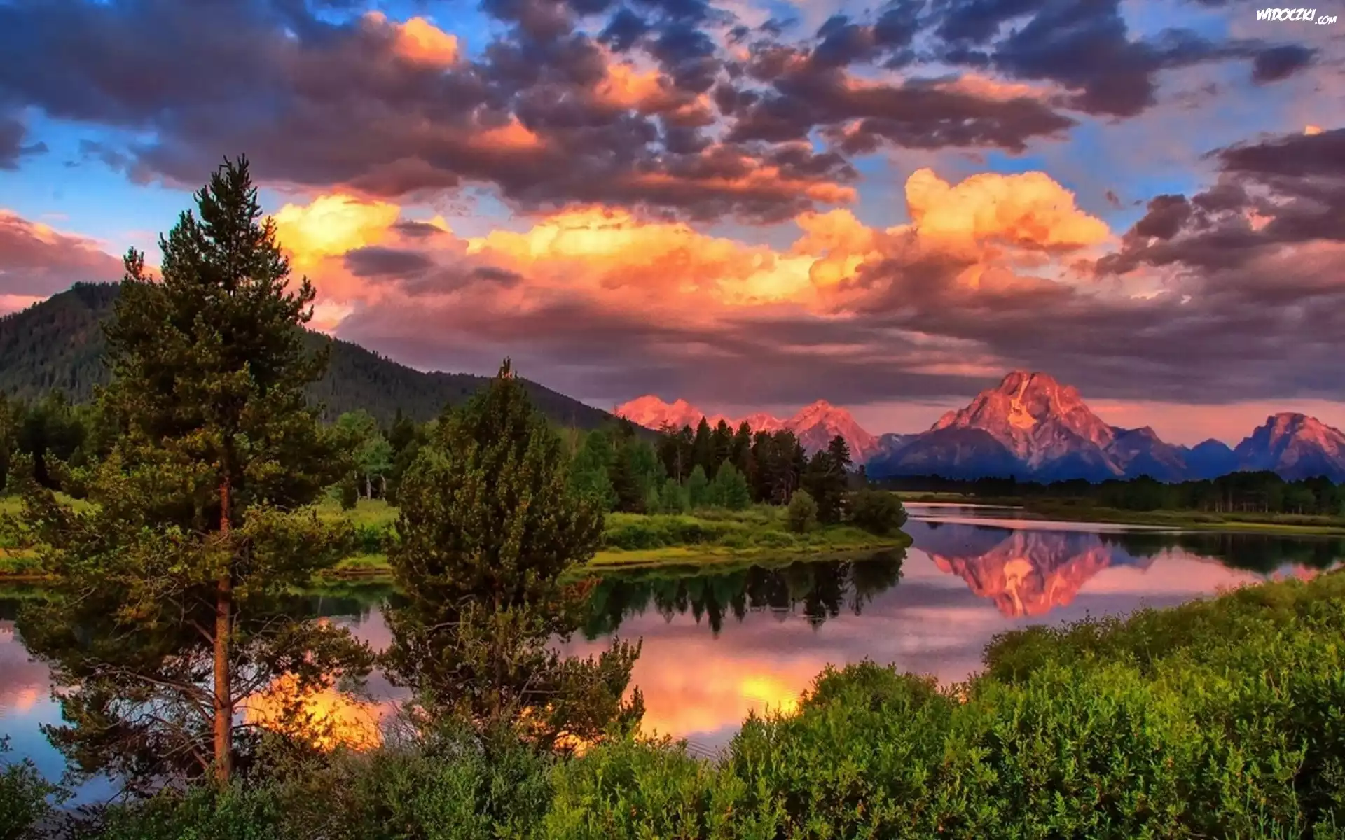 Zdjęcia, Góry, Chmury, Jezioro, Drzewa