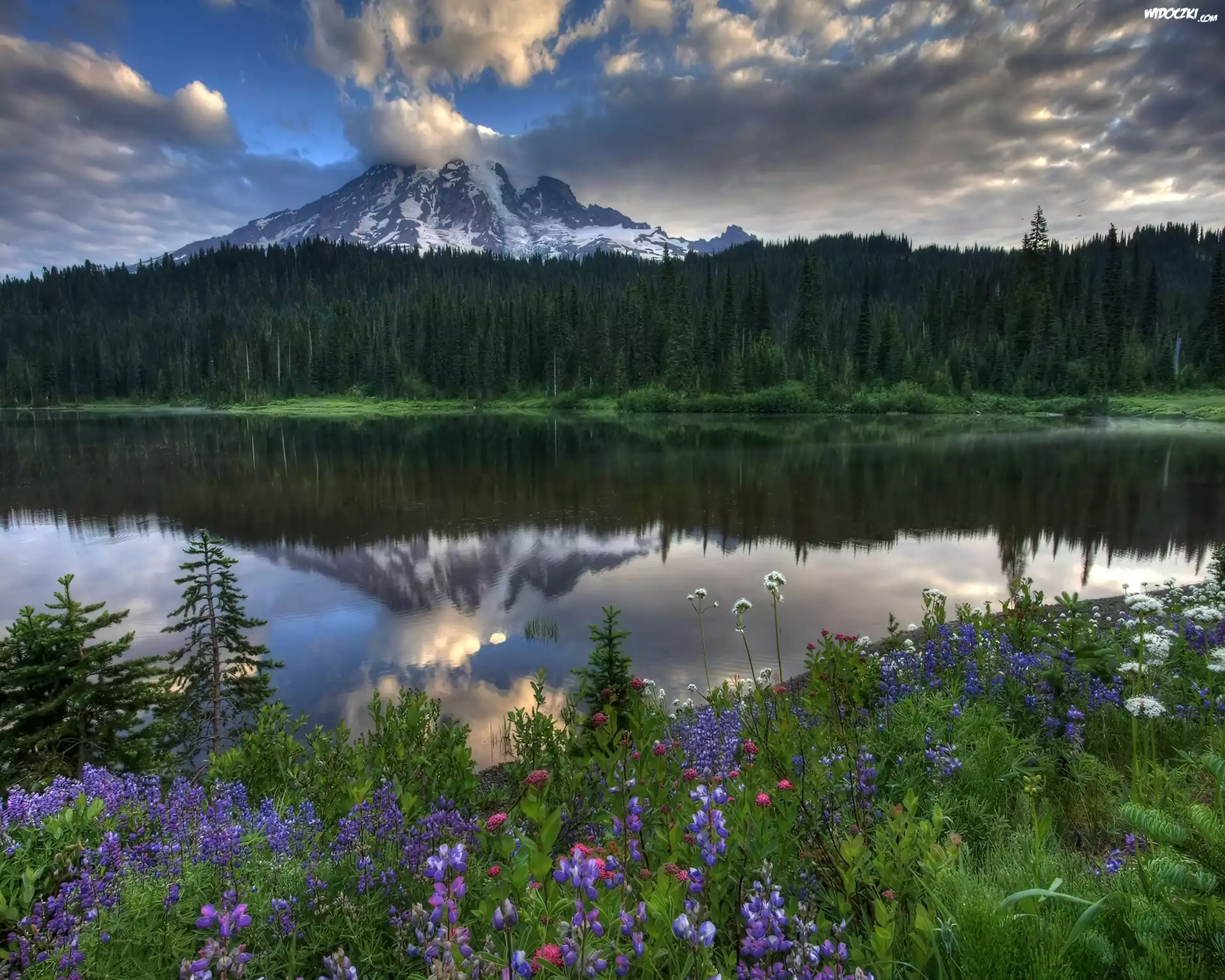 Zdjęcia, Góry, Chmury, Jezioro, Kwiatki