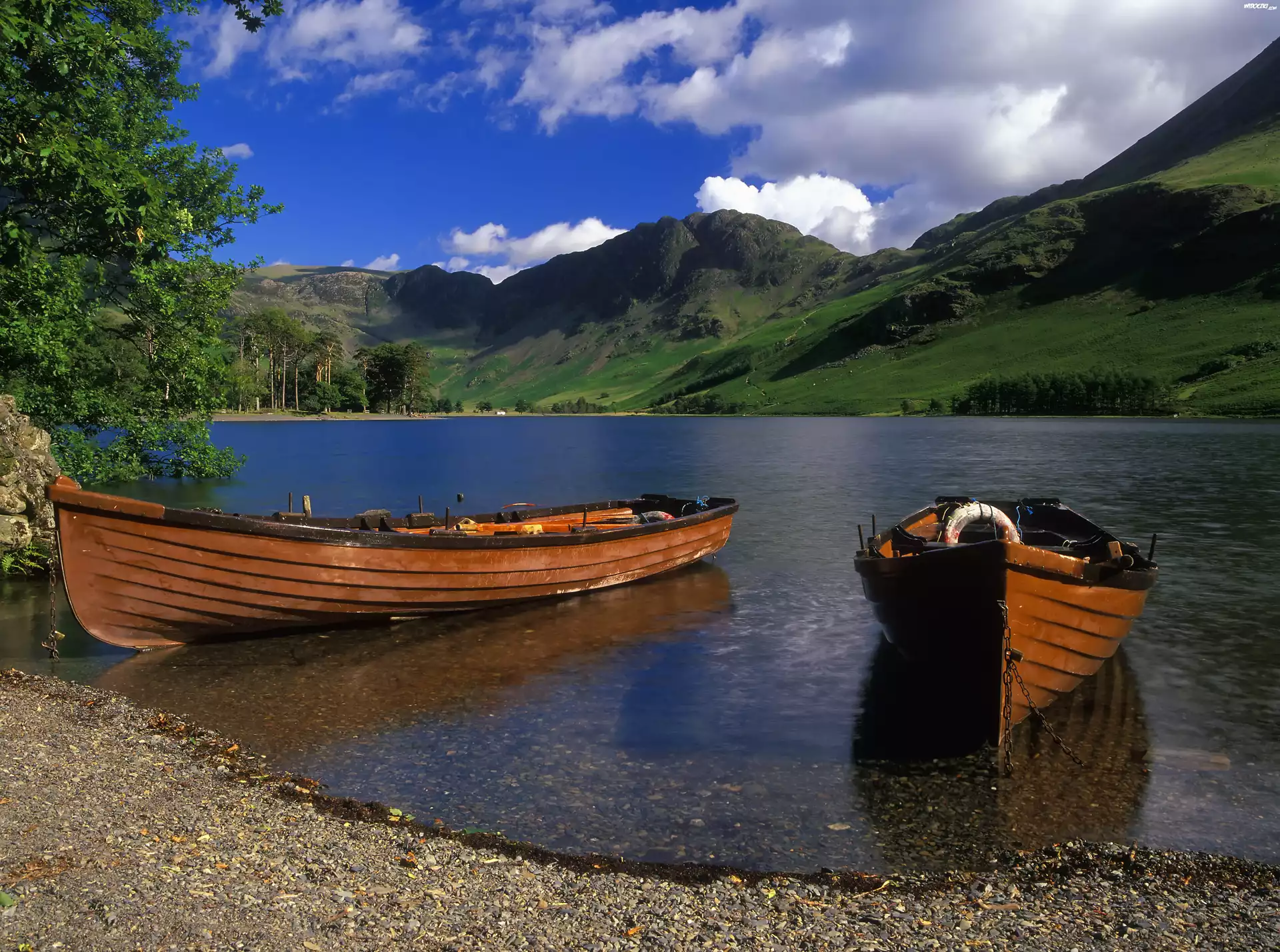Zdjęcia, Góry, Chmury, Jezioro, Łódki