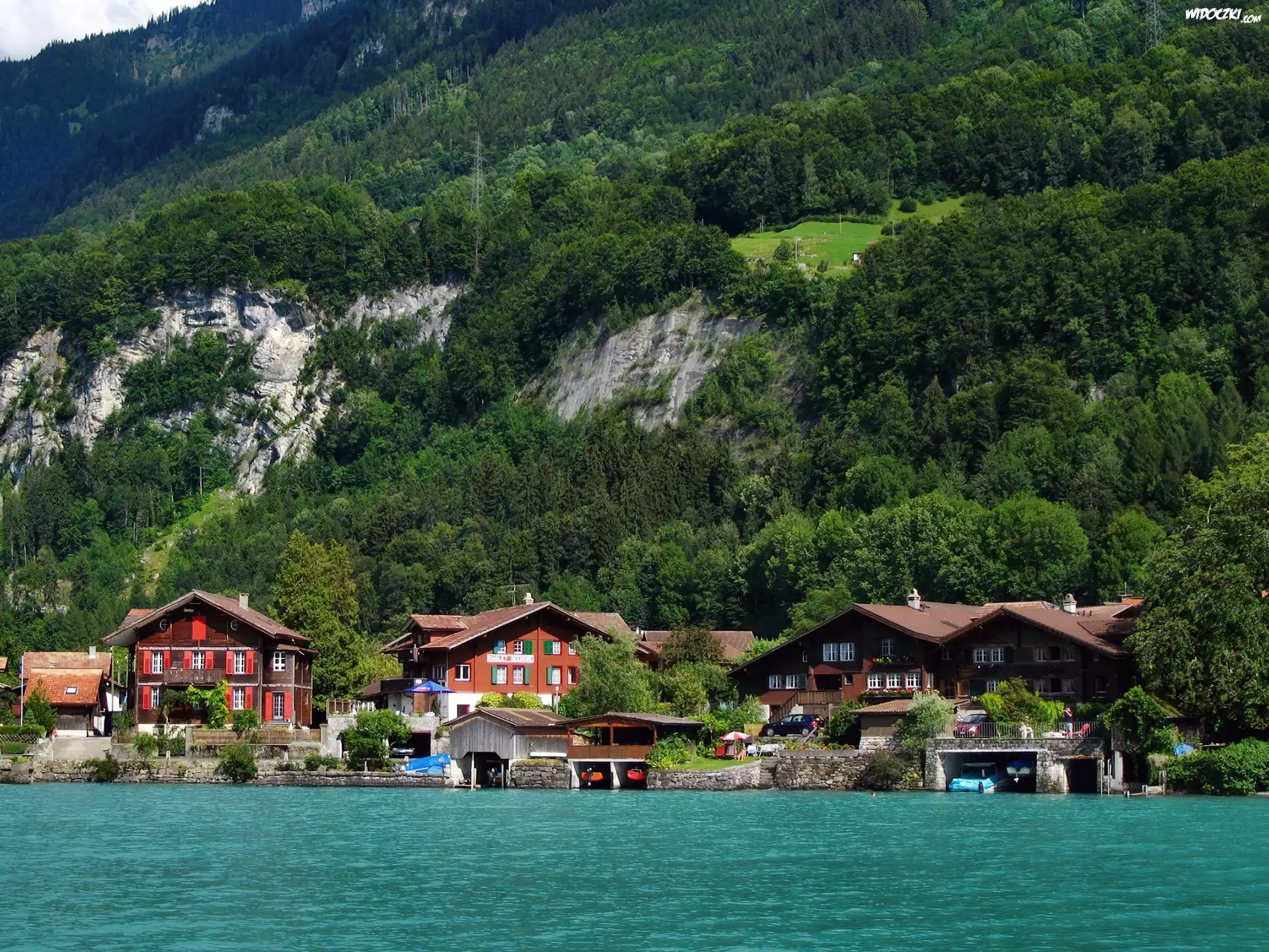 Zdjęcia, Góry, Domy, Jezioro, Szwajcaria