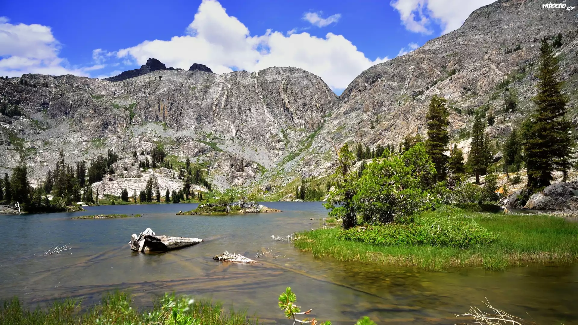 Zdjęcia, Góry, Skały, Drzewa, Jezioro, Roślinność