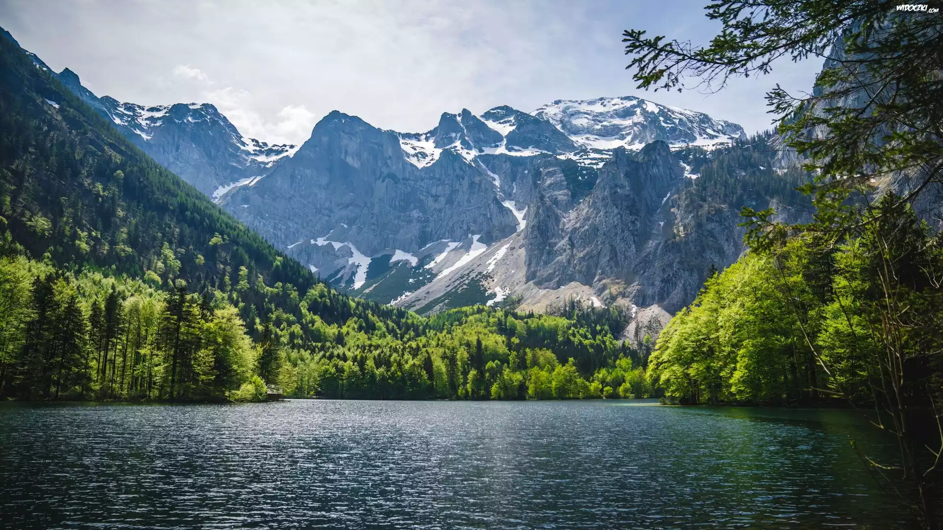Zdjęcia, Jezioro, Zielone, Drzewa, Góry