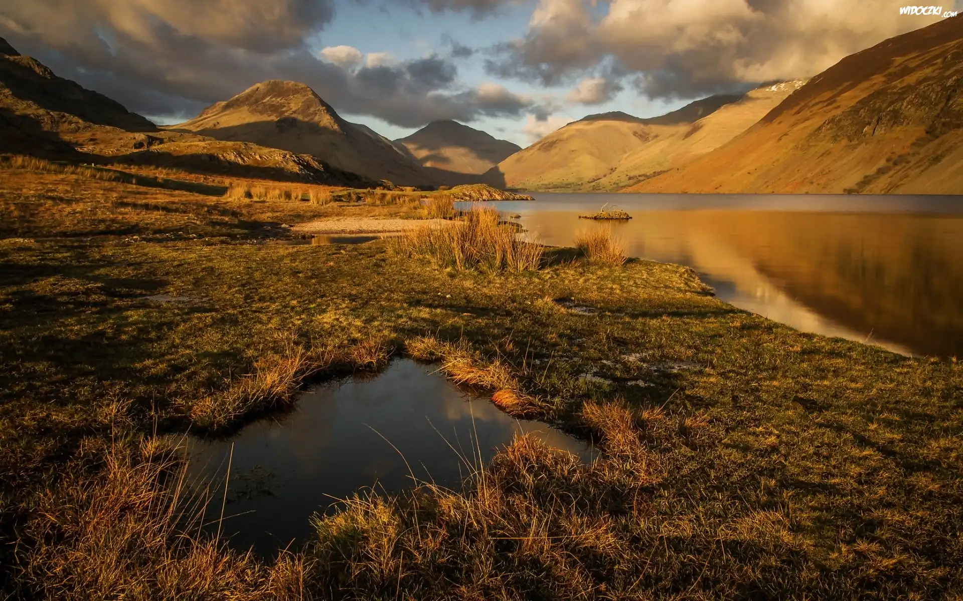 Zdjęcia, Góry, Jesień, Jezioro, Trawa