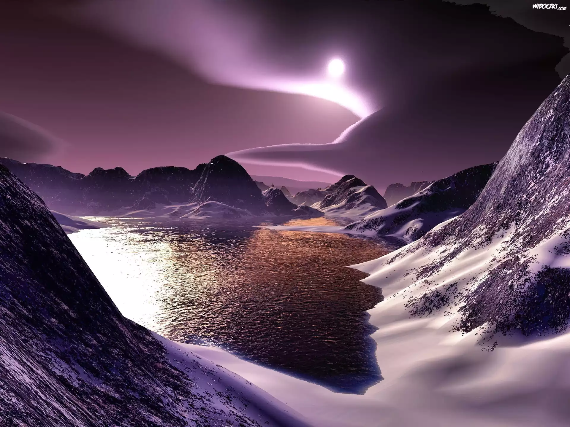 Zdjęcia, Jezioro, Góry, Księżyc