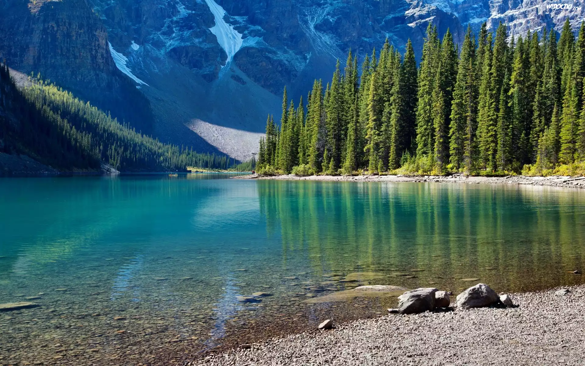 Zdjęcia, Góry, Las, Jezioro, Brzeg