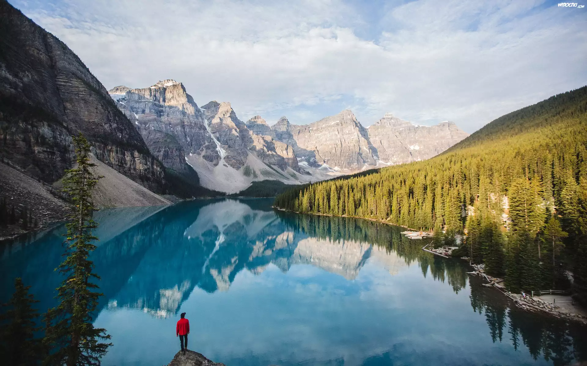 Zdjęcia, Góry, Las, Jezioro, Mężczyzna