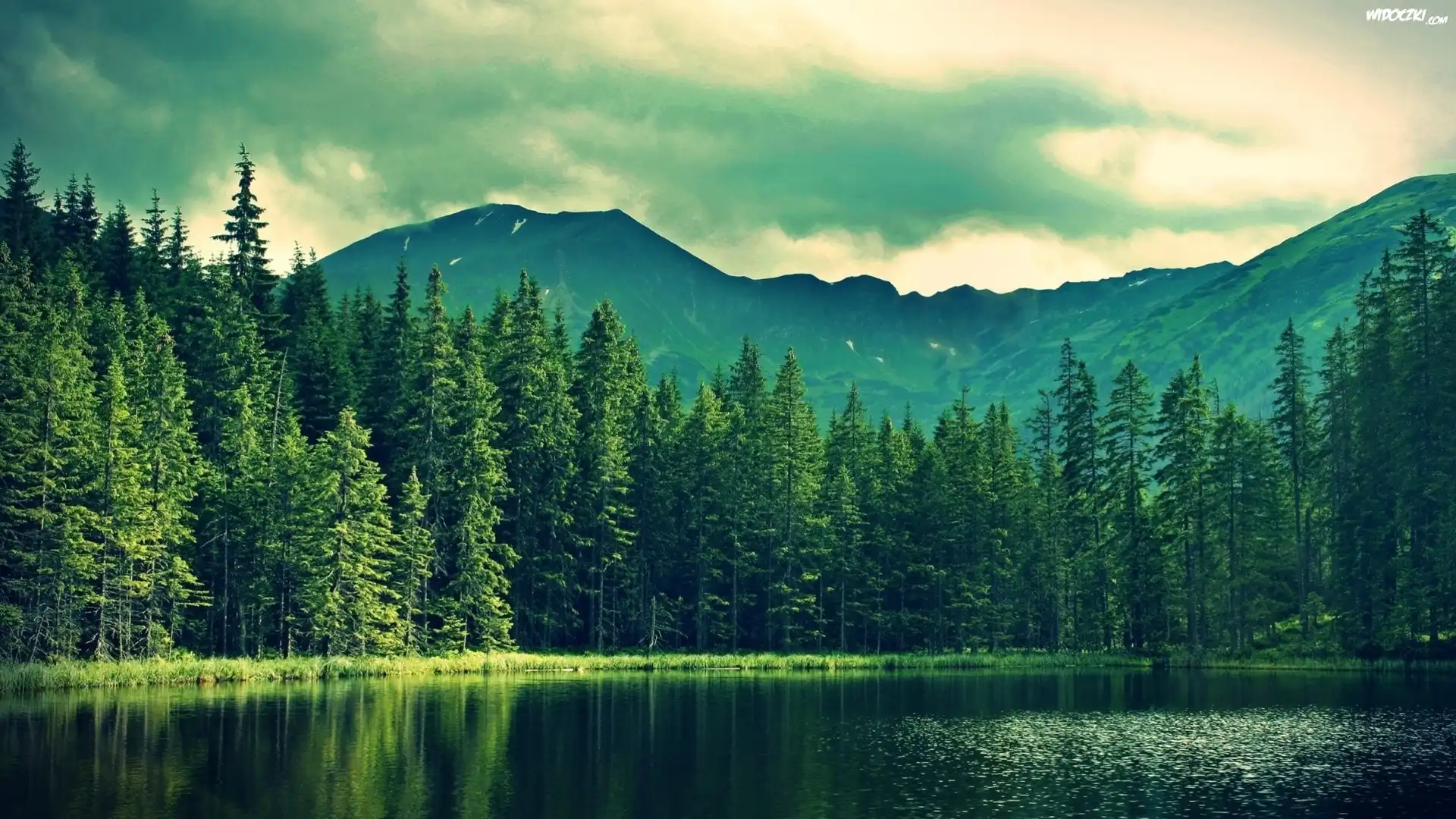 Zdjęcia, Góry, Las, Jezioro, Niebo