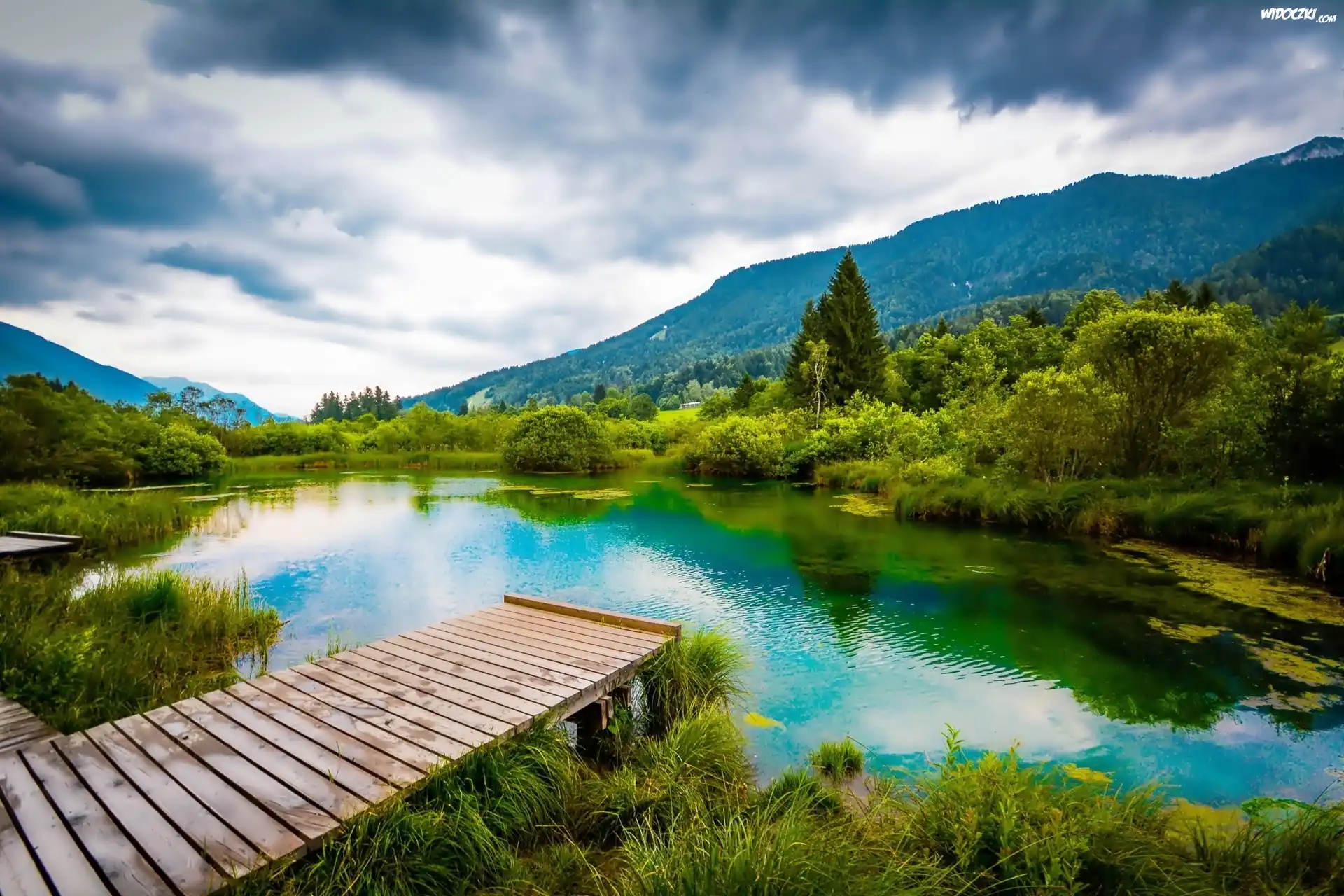 Zdjęcia, Góry, Las, Jezioro, Pomost