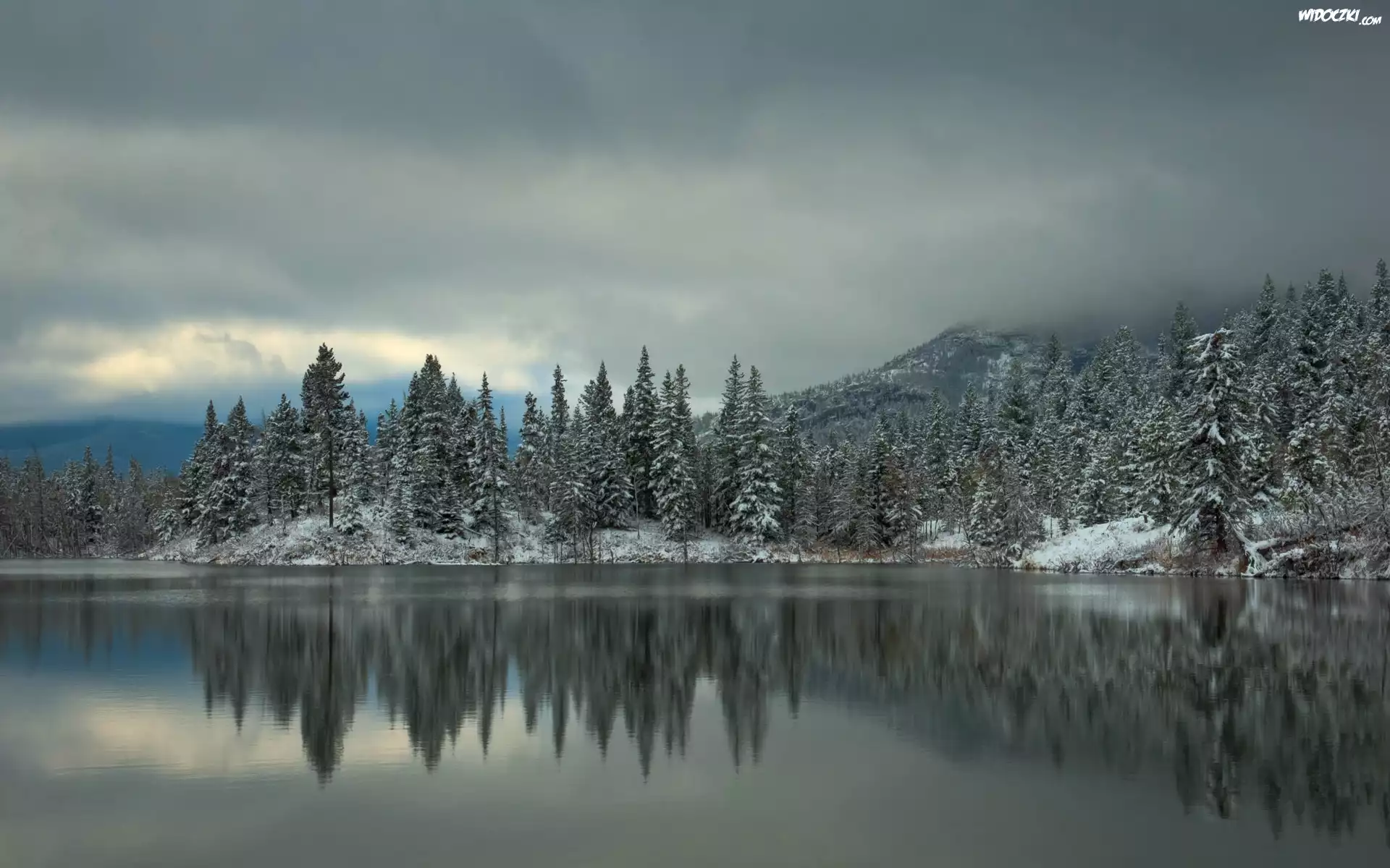 Góry, Las, Jezioro, Zima
