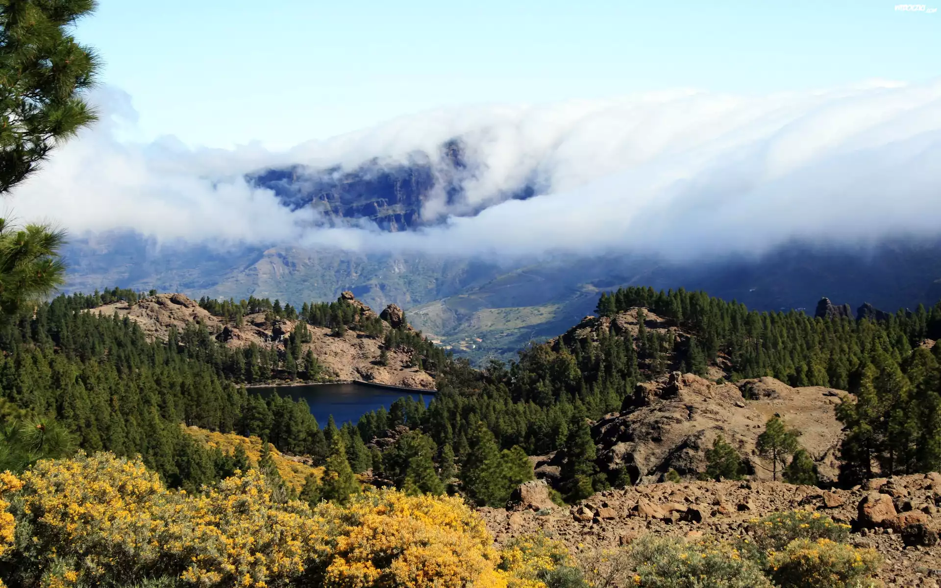 Zdjęcia, Góry, Lasy, Jezioro, Mgła