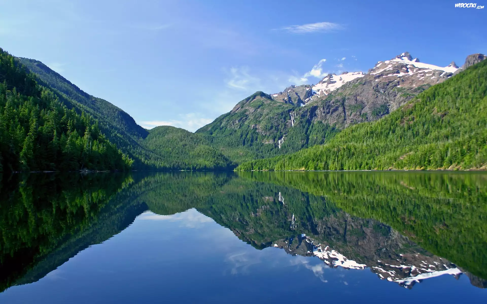 Zdjęcia, Góry, Lasy, Jezioro, Odbicie
