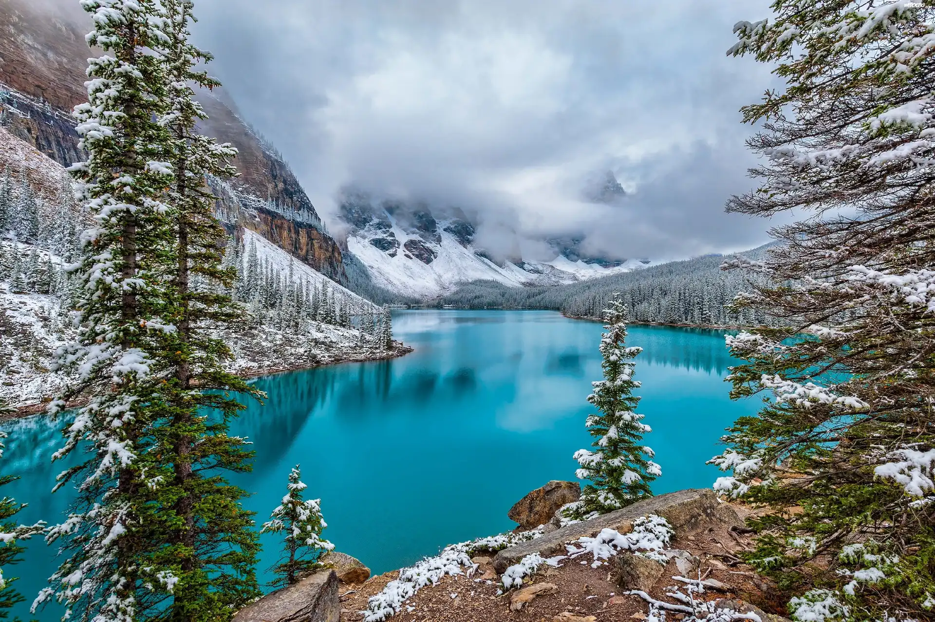 Góry, Mgła, Jezioro, Zima