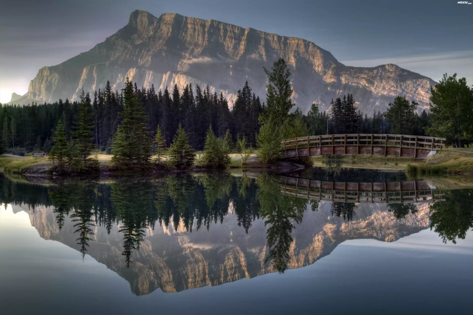Góry, Most, Jezioro, Choinki