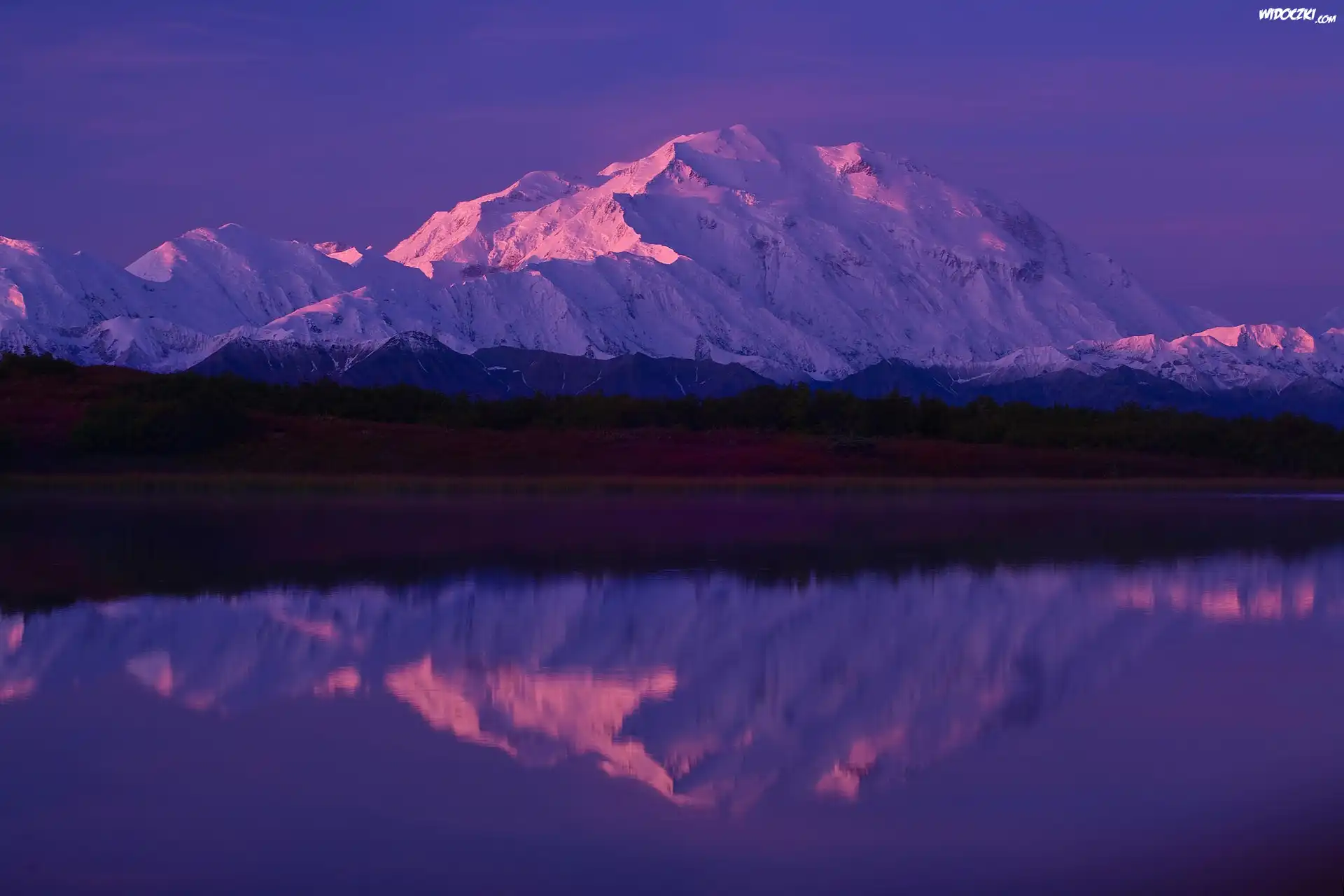 Zdjęcia, Góry, Śnieg, Jezioro, Odbicie