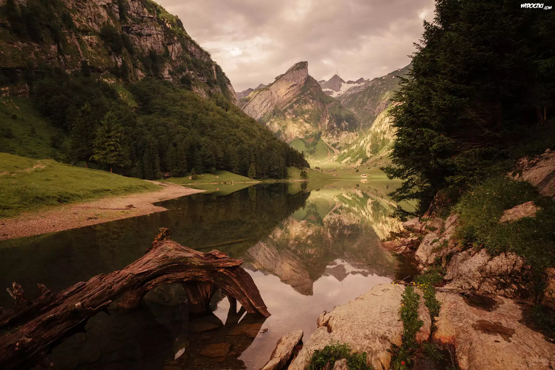 Zdjęcia, Góry, Odbicie, Jezioro, Drzewa