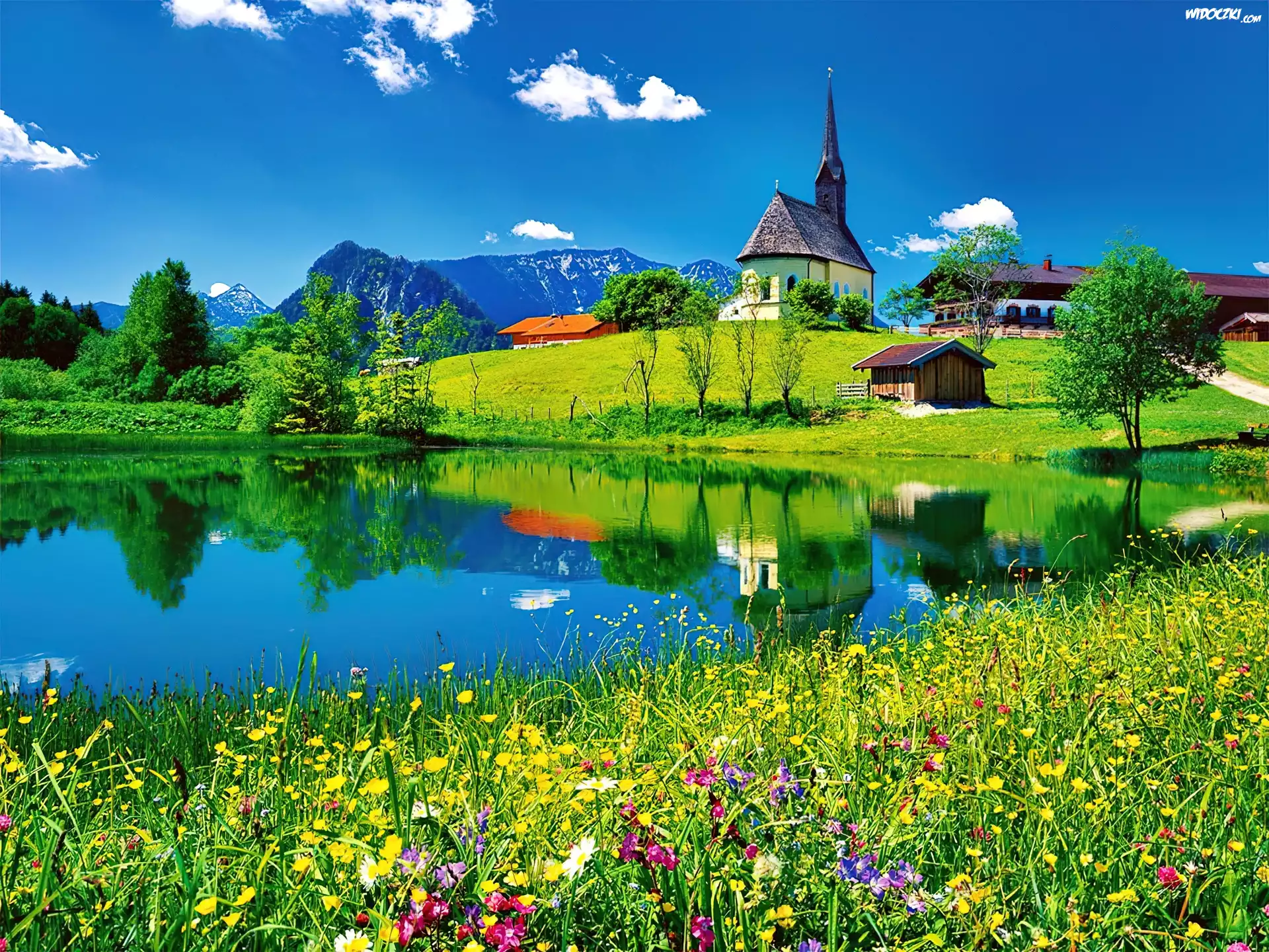 Zdjęcia, Góry, Osada, Jezioro, Bawaria