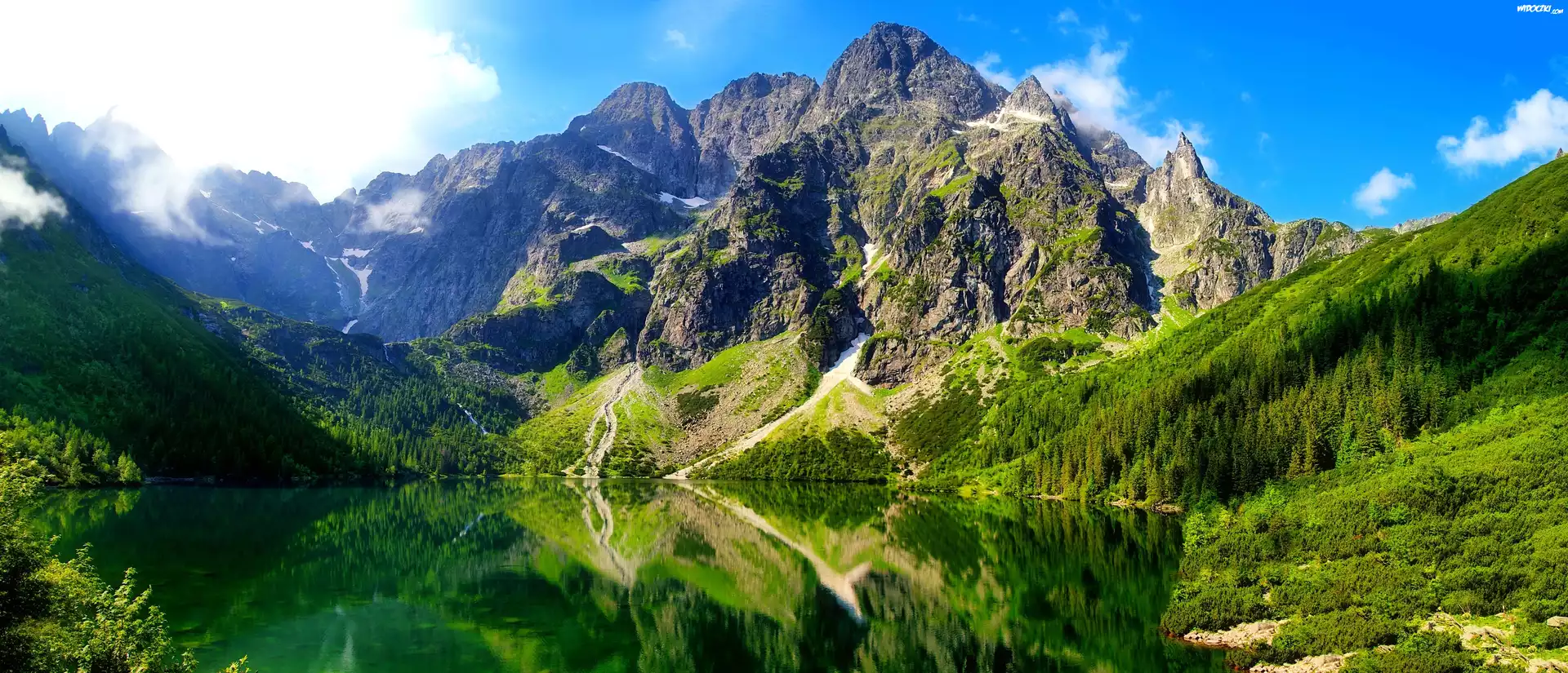 Góry, Roślinność, Jezioro, Odbicie