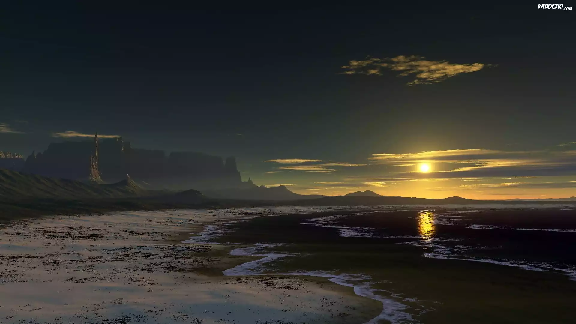 Jezioro, Góry, Słońce