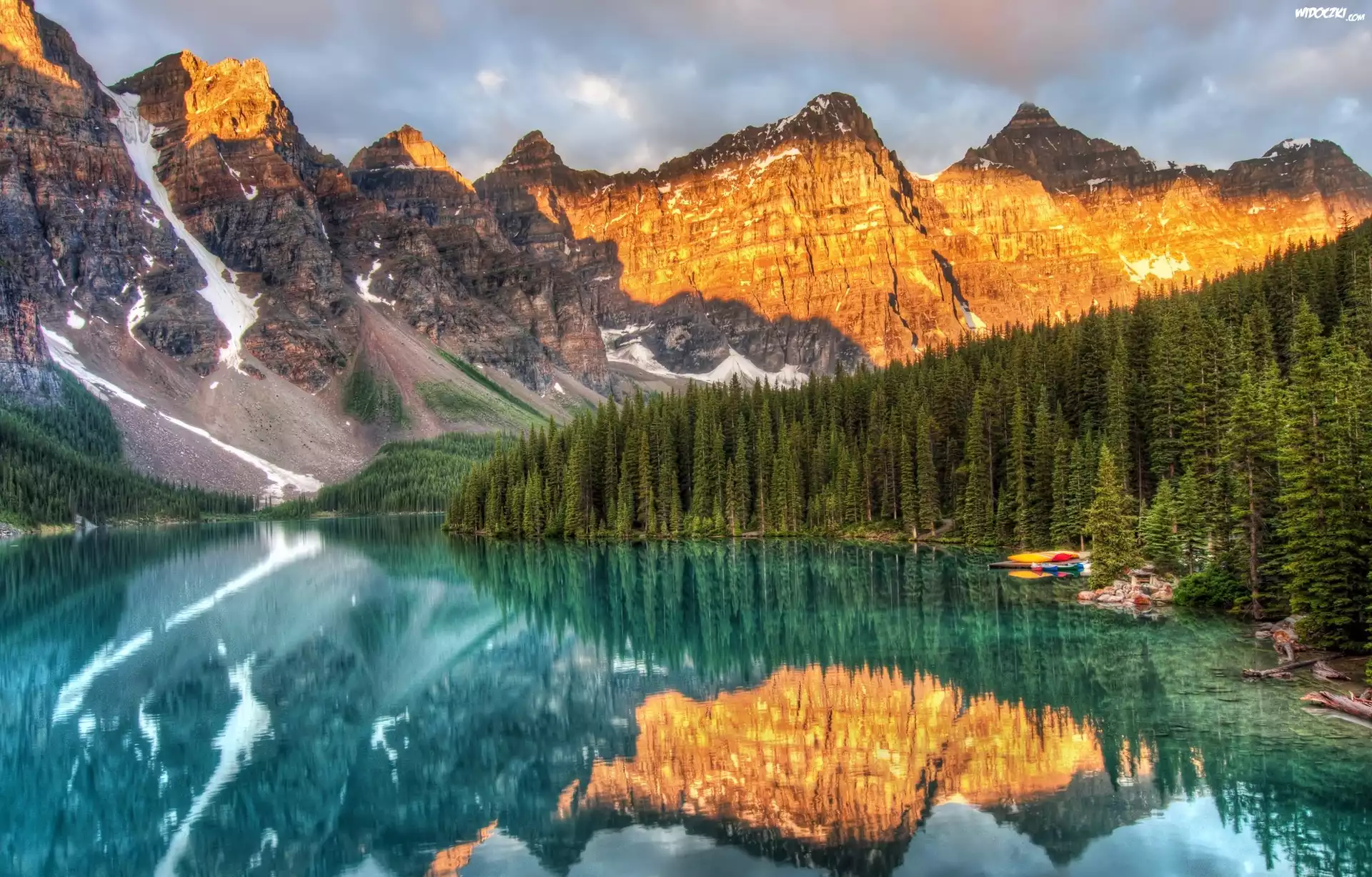 Góry, Las, Jezioro, Kajaki, Odbicie
