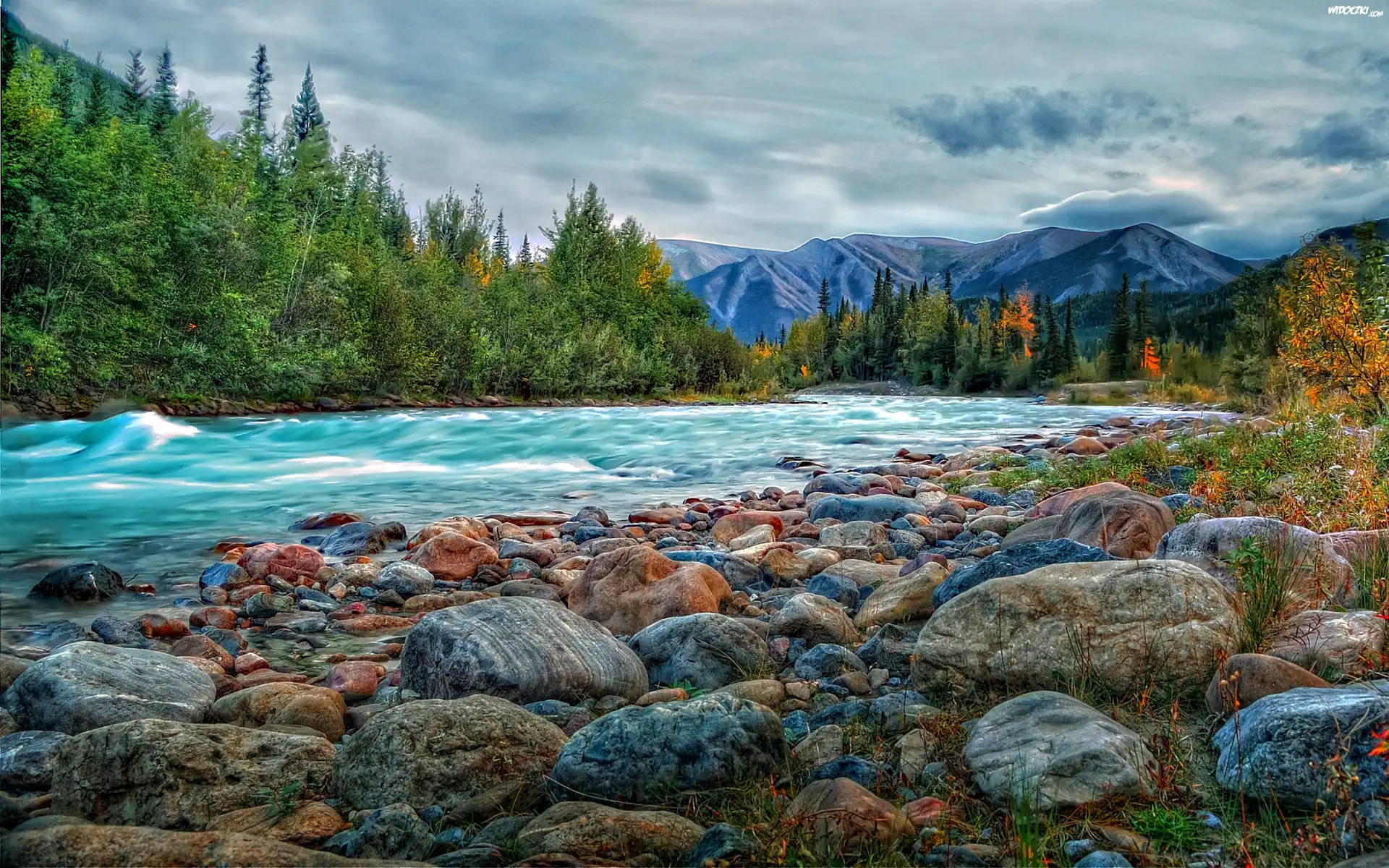 Zdjęcia, Góry, Jezioro, Kamienie, Chmury