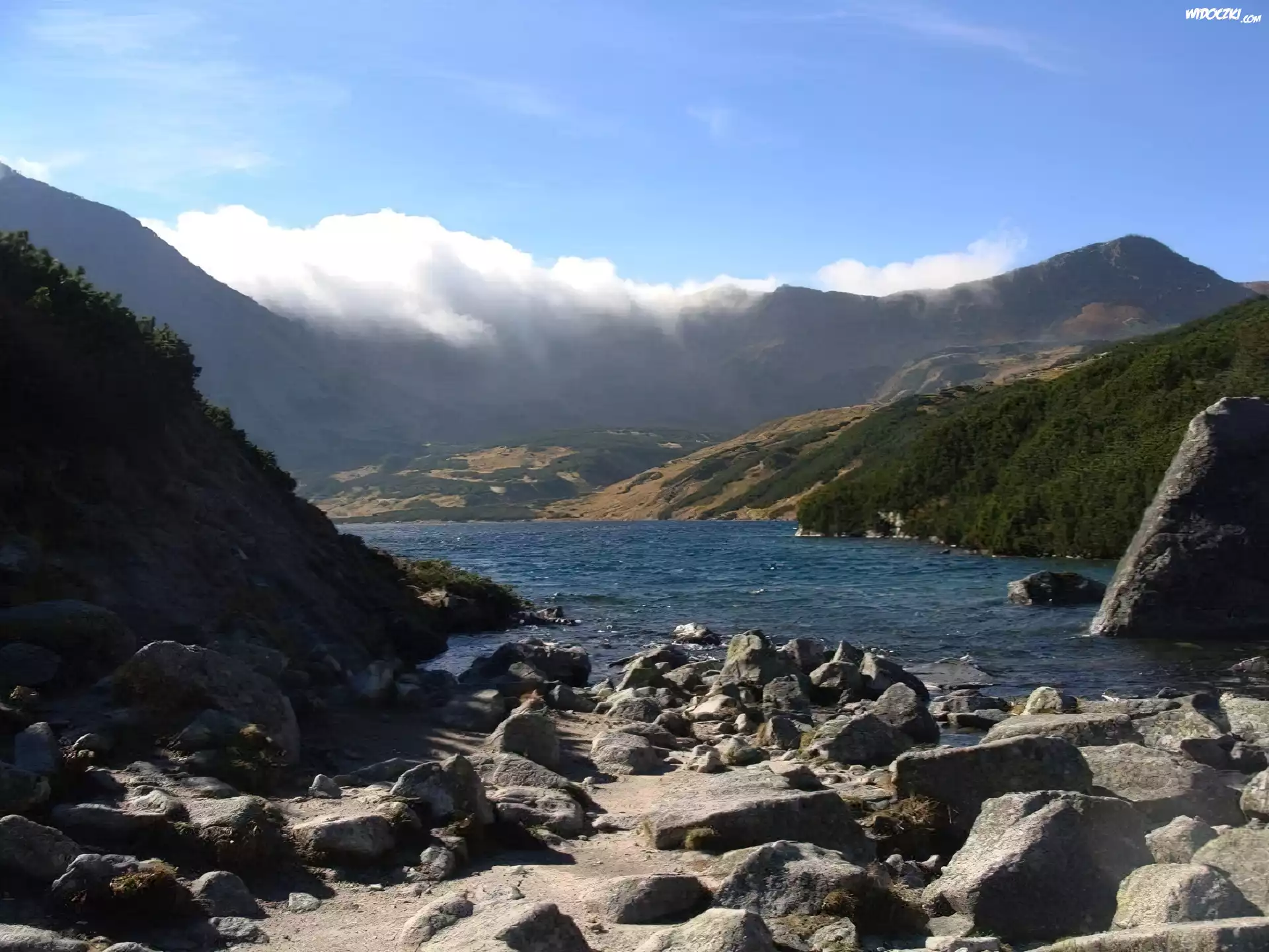 Zdjęcia, Góry, Jezioro, Kamienie, Niebo