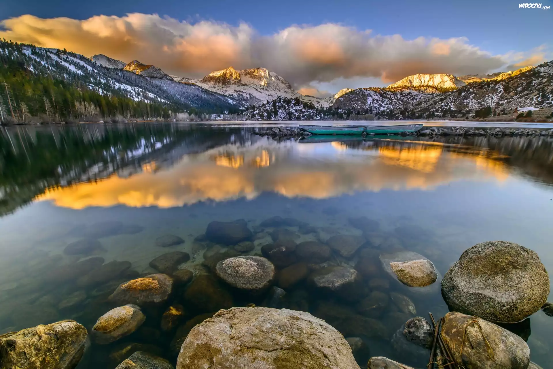 Zdjęcia, Góry, Jezioro, Kamienie, Obłoki